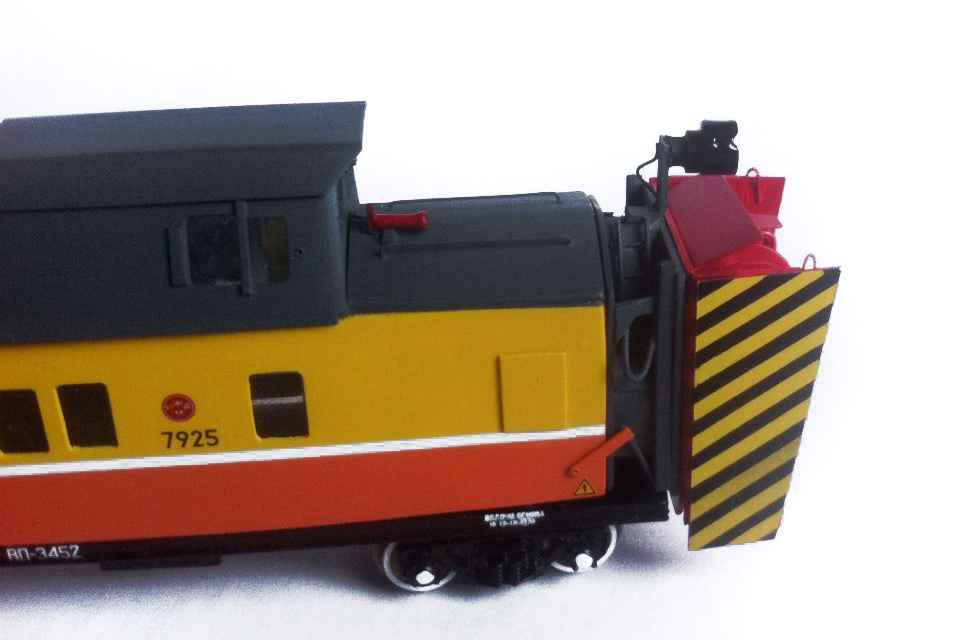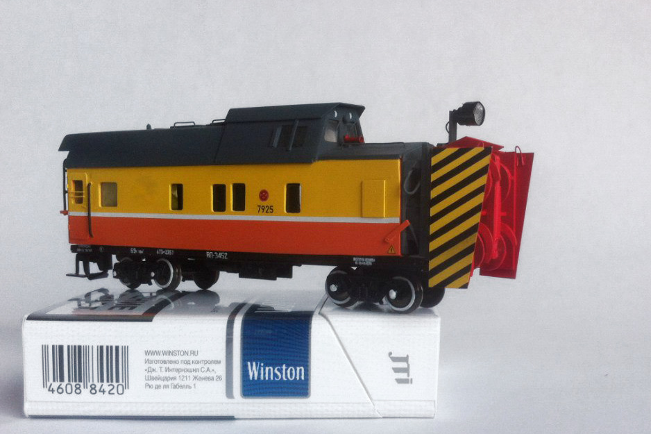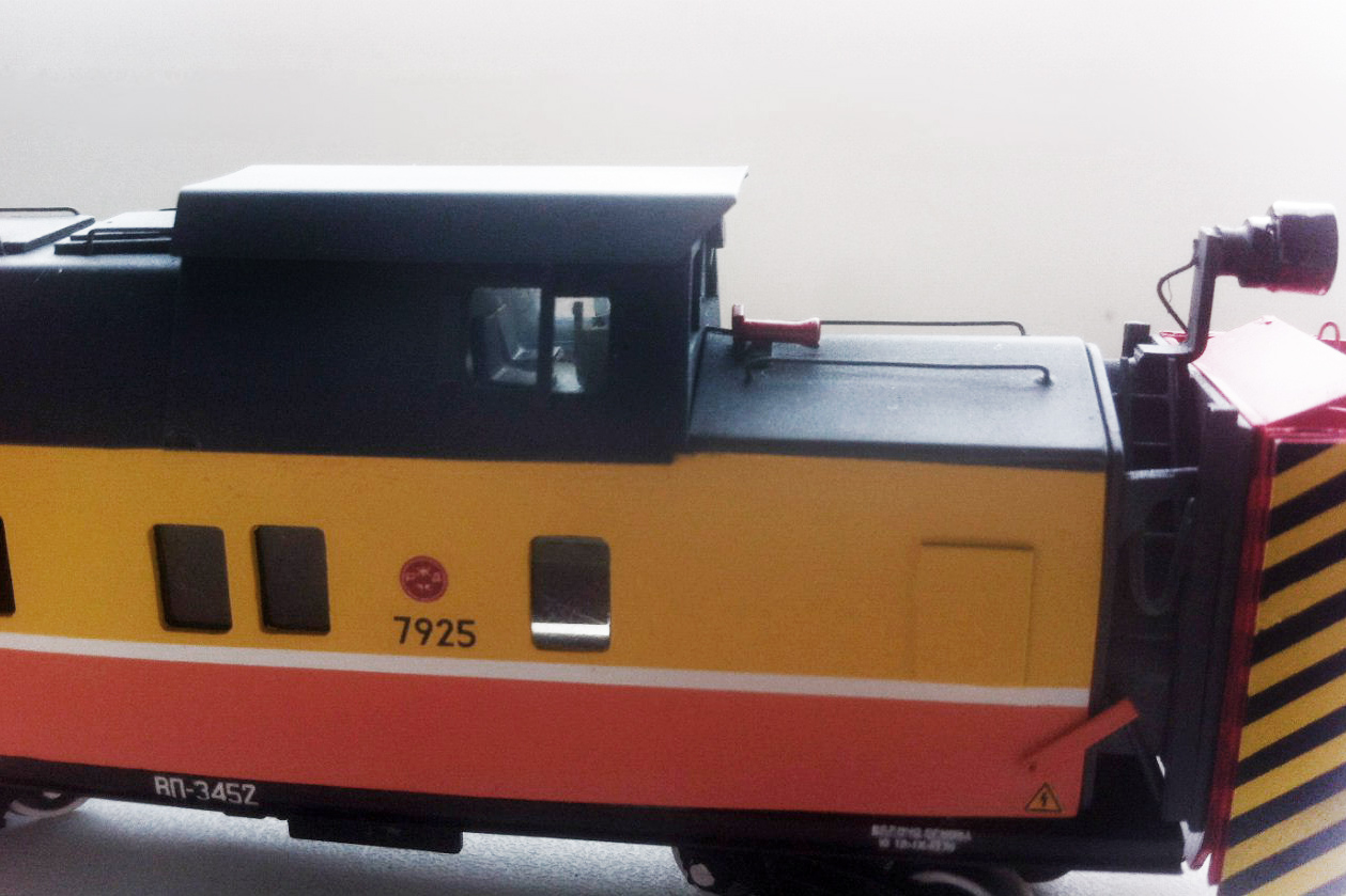 Разновидности: модель выполнена в единственном экземпляре Эпоха: V Принадлежность: РЖД Фирма-производитель: Прийменко В. Год начала производства: 2016 Описание моделиМодель снегоочистителя ФРЭС-2 - авторская работа петербургского моделиста Вячеслава Прийменко. Модель выполнена "с нуля", для ее изготовления использованы ПВХ пластик толщиной 1 мм., полистирол, медная проволока. Использованы тележки ЦНИИ-Х3О фирмы "Пересвет". Проработаны интерьеры кабины управления и машинного отделения. Другие модели снегоочистителя ФРЭС-2: - от И.Пеструхина. Описание прототипаПолное название машины - "Фрезерно-роторный снегоочиститель ФРЭС-2". Трехроторный снегоочиститель ФРЭС-2 имеет на режущих барабанах спиралевидные лопасти, что обеспечивает эффективную работу рабочих органов. Максимальная толщина счищаемого снега - 4,5 м. Скорость передвижения: рабочая - 0,8-1,0 км/ч, транспортная - 100 км/ч. Ходовая часть обеспечивает хорошие динамические качества и прохождение в сцепке с тепловозом в кривых радиусом 110-160 м., а также через сортировочные горки. Тормозная система оборудована автоматическим прямодействующим тормозом с питанием от локомотива. Призводитель - АО «Синара-Транспортные Машины».