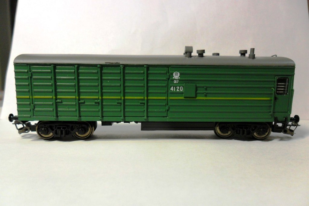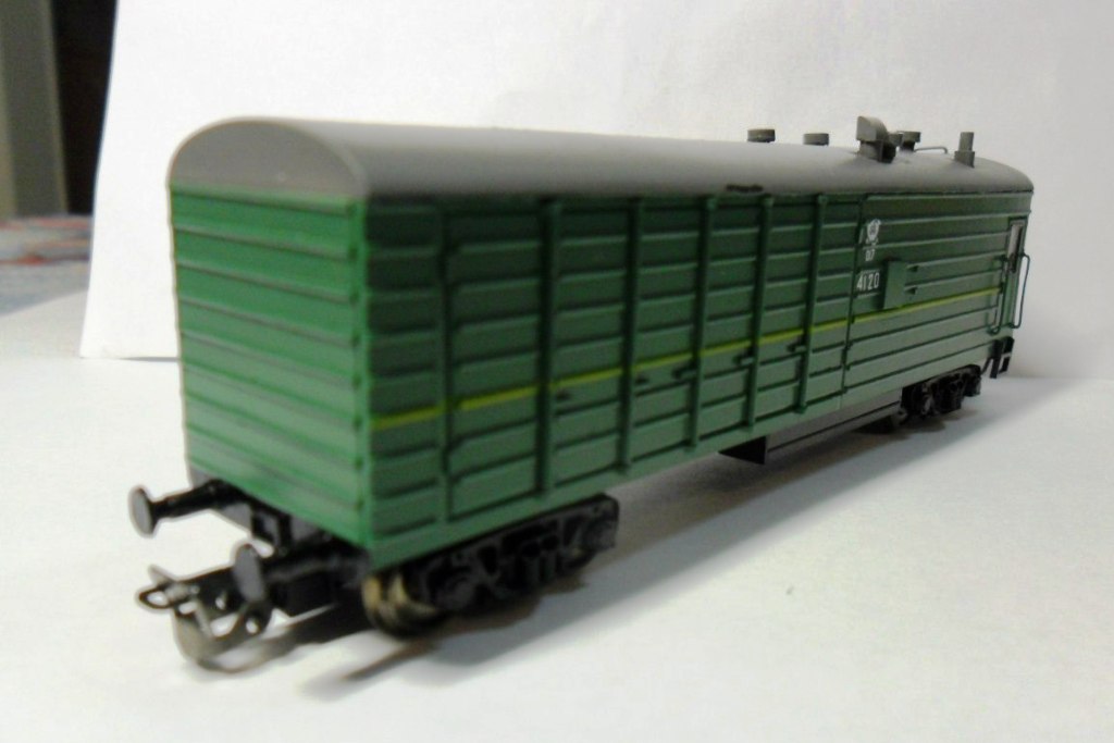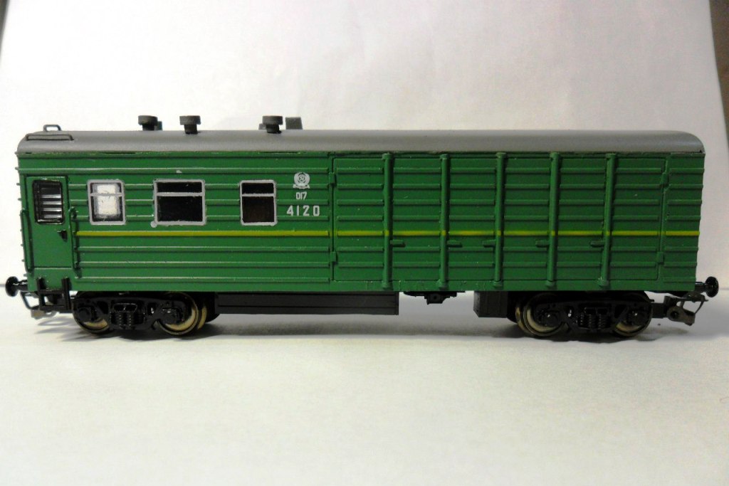 Разновидности: одна разновидность Эпоха: IV Принадлежность: СЖД Фирма-производитель: SH-TT Год начала производства: 2015 Год окончания производства: малая серия Описание моделиМодель хлебораздаточного вагона - малосерийный проект Творческого объединения "SH-TT" (Андрей Шаподра, Санкт-Петербург). Корпус модели выполнен вручную из пластика. Использованы отдельные детали (тележки, тормозное оборудование, ступени, окна и др.), производимые для серийных моделей фирмами "Пересвет" и "ТТ-Модель".