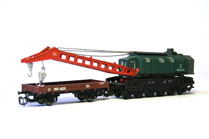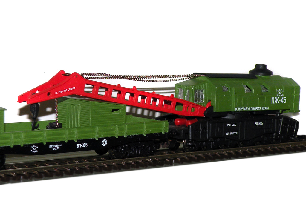 Кадр 3. Модель крана ПЖ-45 с трофейной 2-осной платформой.