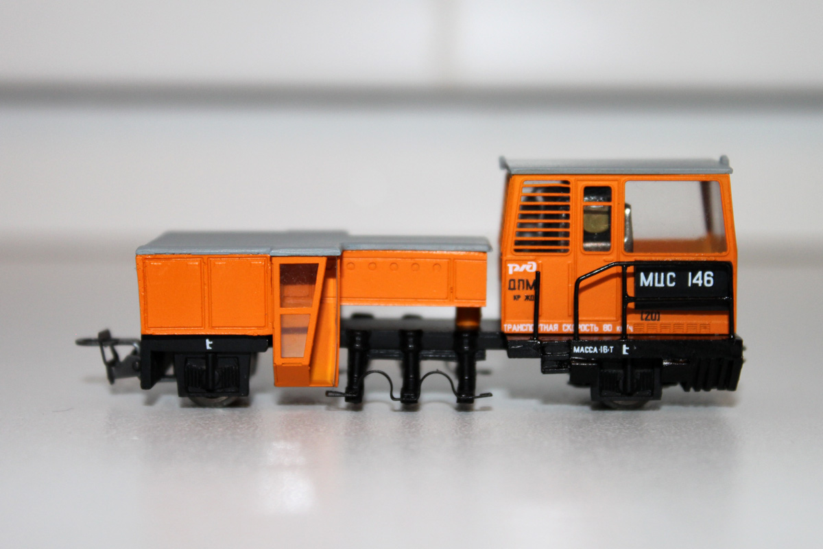Разновидности: одна разновидность Эпоха: V Принадлежность: РЖД Фирма-производитель: Karsei Описание моделиМодель путевой машины - гайковёрта МЦС - конверсия, выполненная петербургским моделистом Кириллом Виноградовым на основе мелкосерийной модели от Karsei. Добавлены полноченные перила (изначально на модели были установлены невзрачные имитации), изменены надписи (с немецких Описание прототипаПутевая машина-гайковёрт типа МЦС (нем. MZS) - разработка научно-исследовательского предприятия железных дорог ГДР (FEW-DR). Машина МЦС позволяет выполнять автоматически все необходимые работы по закреплению верхнего строения пути. Выполняет работы по завинчиванию и отвинчиванию скреплений на рельсах типа Р50, Р65, Р75. Масса машины - 16,0 т.