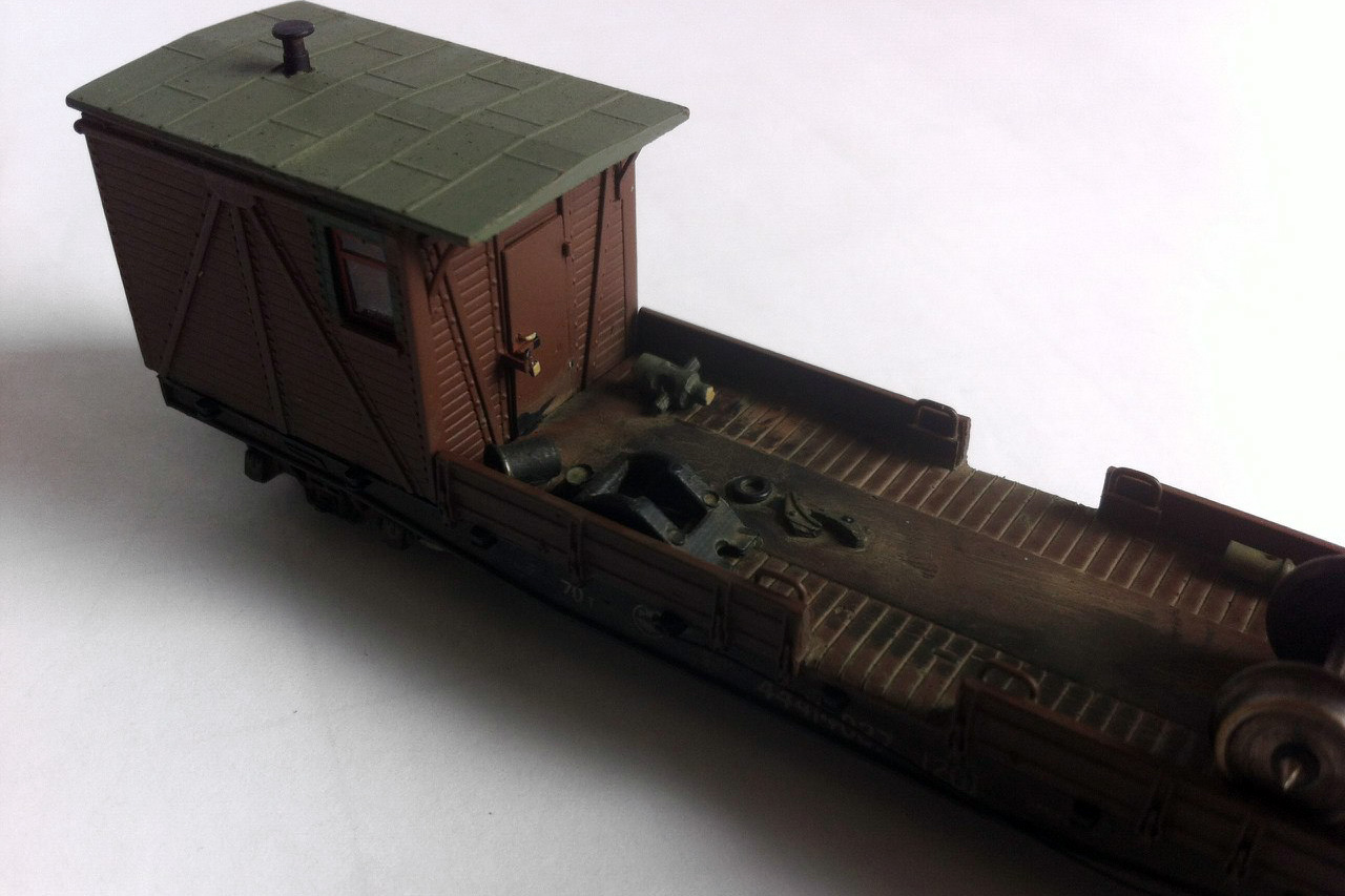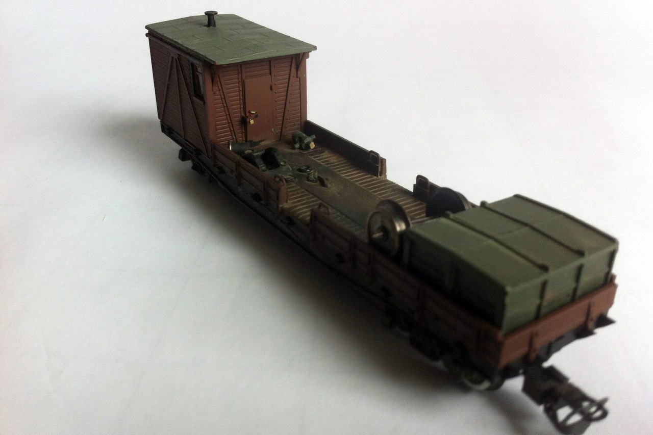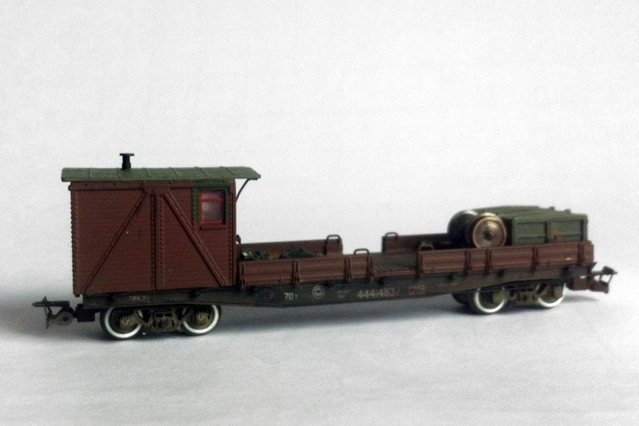 Разновидности: модель выполнена в одном экземпляре Эпоха: V Принадлежность: РЖД Фирма-производитель: Прийменко В. Год начала производства: 2014 Описание моделиМодель такелажного вагона выполнена петербургским моделистом Вячеславом Прийменко на основе серийной модели 4-осной бортовой платформы производства фирмы "Пересвет". Добавлено множество оригинальных деталей, выполненных с использованием разнообразного набора материалов: пвх, полистирол, медная проволока и др., а также элементов корпуса и крыши модели крытого 50-т вагона от "Пересвета". Осуществлено "состаривание" модели. Другие модели подкрановых платформ и такелажных вагонов: - от В.Прийменко (подкрановая платформа), - от К.Лукманова, - от М.Кечетова.