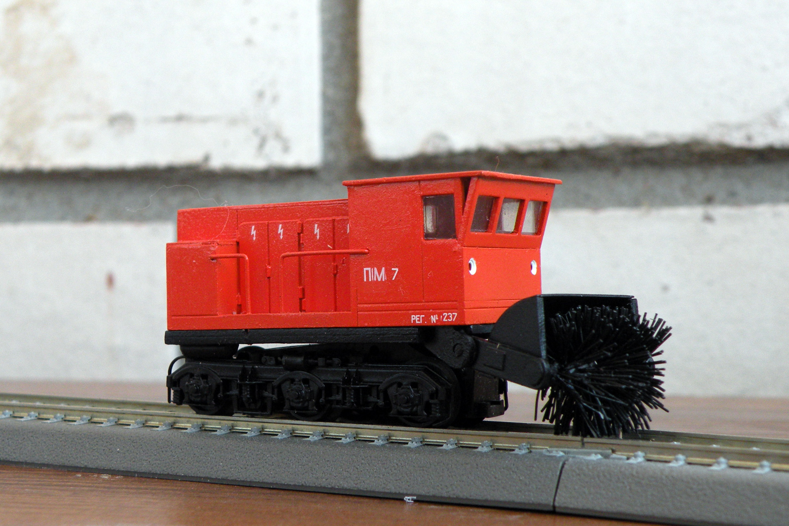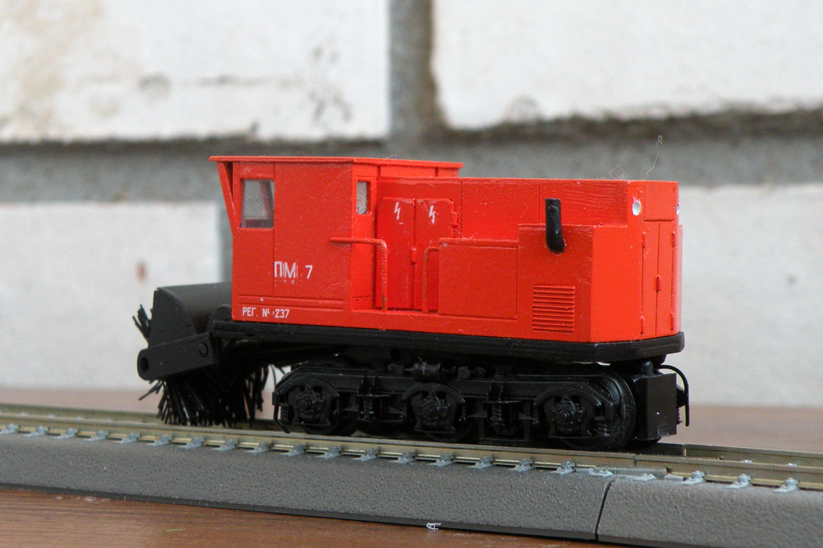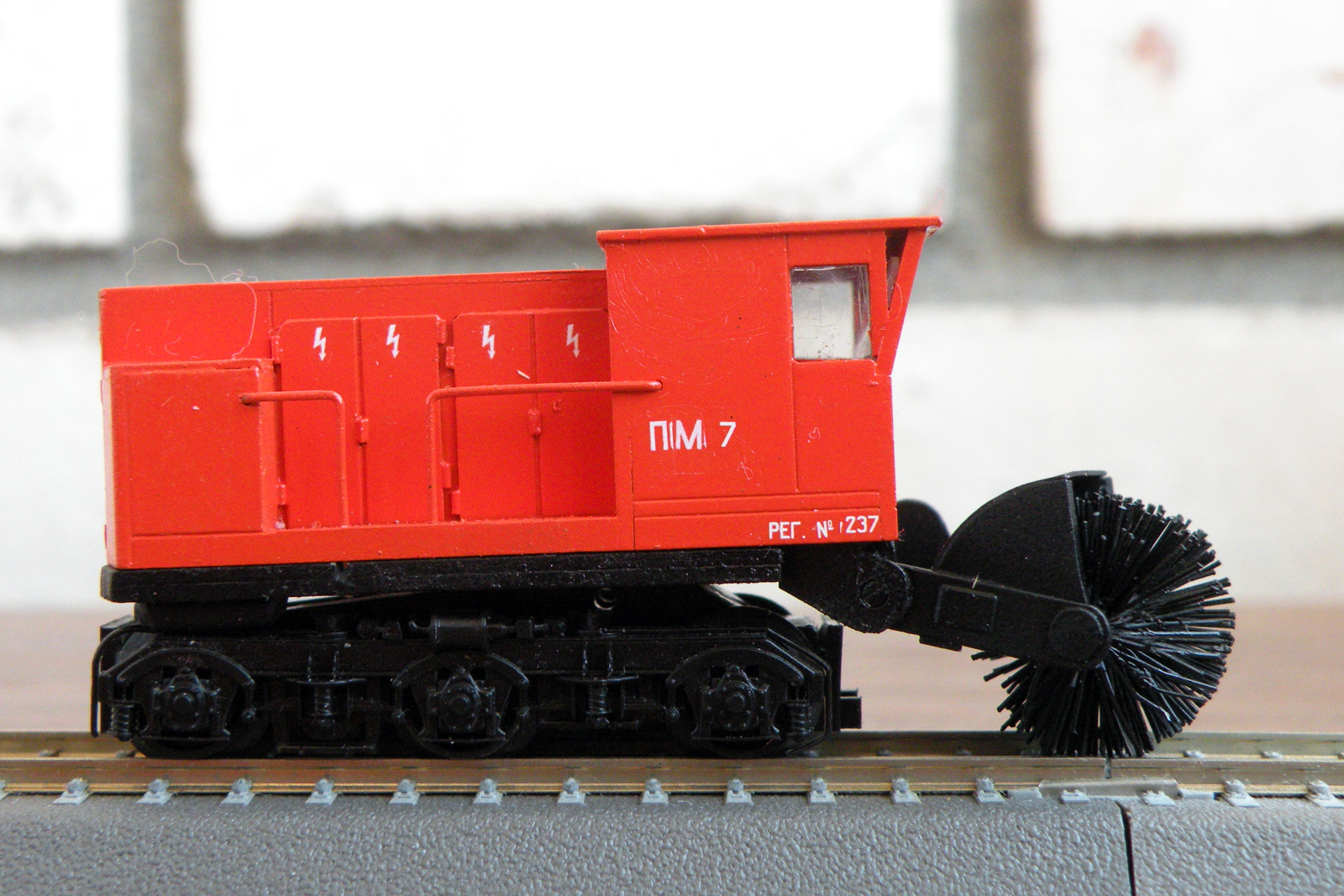 Разновидности: модель выполнена в единственном экземпляре Фирма-производитель: Попов_С. (Москва) Год начала производства: 2015 Описание моделиМодель путеочистительной машины ПМ-7 - авторская работа московского моделиста Сергея Попова. Корпус - из пластика; использована тепловозная тележка от фирмы "Пересвет". Полностью готовая модель впервые демонстрировалась на традиционной выставке "Железнодорожная модель" в ЦМЖТ, Санкт-Петербург, в марте 2016 г. Описание прототипаПМ-7 - полноповоротная щёточная путеочистительная машина. Была разработана и изготавливалась в Магнитогорске под руководством Д.М.Сызько - начальника цеха пути с 1972 г. Ходовая часть - облегченная тележка тепловоза серии ТЭМ. В качестве силовой установки используется дизель ЯМЗ-238 либо У1Д6.
