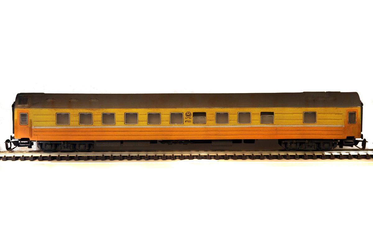 Разновидности: модель выполнена в одном экземпляре Эпоха: V Принадлежность: РЖД Фирма-производитель: Ватаев А. Год начала производства: 2014 Описание моделиМодель вагона-бригадника в составе путеукладочного поезда в обычной жёлто-оранжевой окраске на базе списанного спального вагона РИЦ была впревые представлена петербургским моделистом Андреем Ватаевым на выставке в ЦМЖТ (Санкт-Петербург) в марте 2014 г. Модель выполнена самостоятельно с использованием деталей вагона типа Y от ВТТВ (крыша, тамбуры) и ЦМВ от "ТТ-Модель" (боковые стенки, окна). При окраске использована технология "состаривания". Полезная ссылка: Статья из журнала "ТТ-Курьер"о технологии самостоятельного изготовления модели спального вагона типа РИЦ из моделей вагона "Y" от ВТТВ и ЦМВ от "ТТ-Модель" - в рубрике "Идеи и ресурсы" раздела "Мир ТТ" на нашем сайте.