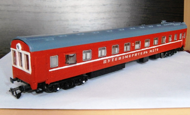 Модель вагона-путеизмерителя № 270 выполнена путем конверсии серийной модели купейного вагона ЦМВ производства фирмы "ТТ-Модель".