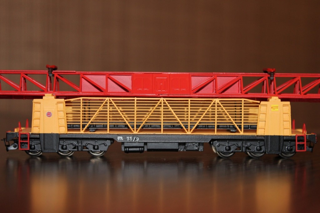 Эпоха: IV-V Принадлежность: СЖД-РЖД Фирма-производитель: ES Год начала производства: 200 Год окончания производства: малая серия Описание моделиМодель путеукладочного крана УК25 (корпус из эпоксидной смолы) - зондерсерия чешской фирмы ES. Модель выполнена в окраске СЖД/РЖД без буферов (но, к сожалению, и без надписей). Вариант УК25 в комплекте с отечественной моторизованной платформой изготавливался эксклюзивно по совместному заказу "Лейбъ-компании"/"Modelldepo". Другие модели путеукладочного крана УК-25: - от В.Прийменко; - от Н.Мосичева. Описание прототипаКран укладочный УК25/9 предназначен для укладки рельсошпальной решётки на подготовленное земляное полотно. В СССР строился в 1970-80-х гг. на заводе "Калугапутьмаш". Используется с моторными платформами МПД, предназначенными для транспортировки рельсошпальной решётки на участках работ. Один из прототипов - экспонат музея Западно-сибирской железной дороги (ст. Сеятель, Новосибирск).
