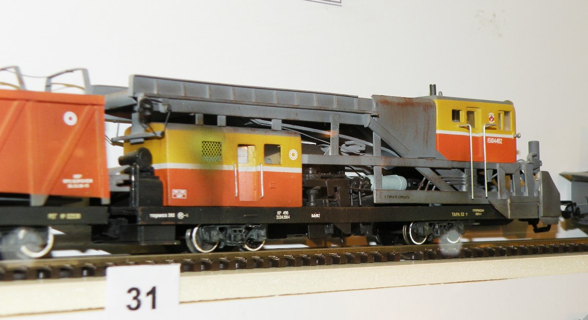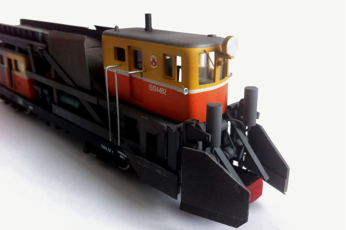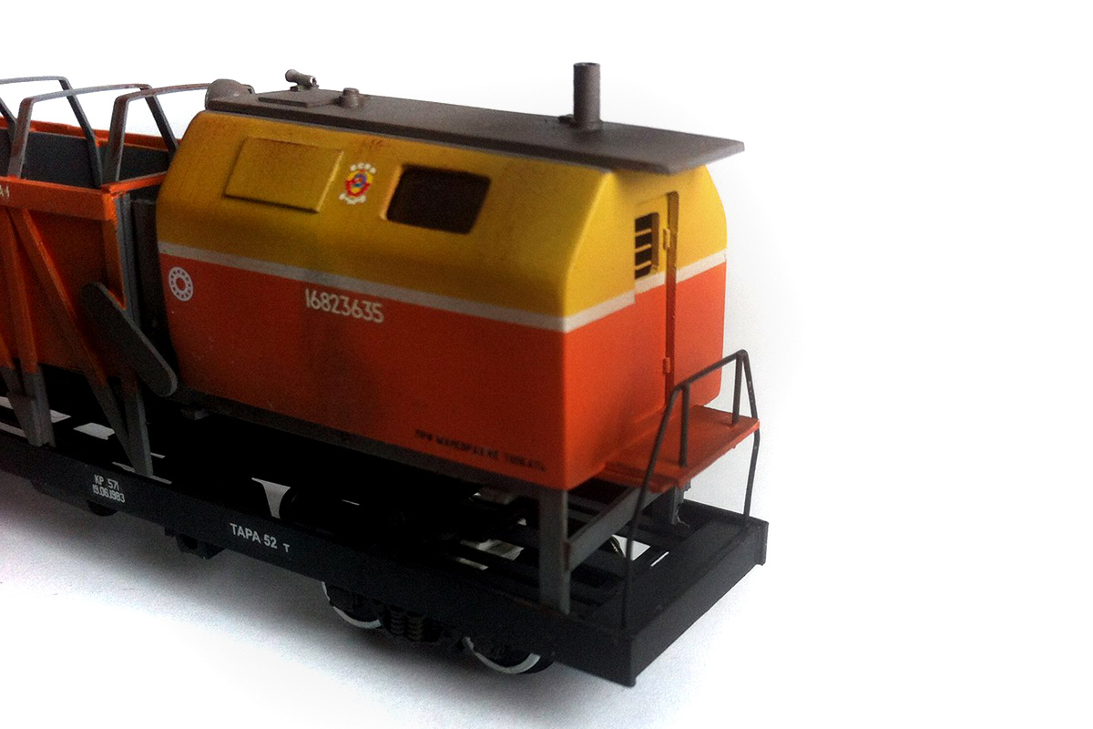 Разновидности: модель выпущена в единственном экземпляре Эпоха: IV Принадлежность: СЖД Фирма-производитель: Прийменко В. Год начала производства: 2015 Описание моделиМодель снегоуборочной машины СМ2 самостоятельно изготовлена петербургским моделистом Вячеславом Прийменко в январе 2015 г. Модель выполнена на основе традиционной для автора ручной технологии с использованием ПВХ пластика 1 мм., полистирола и медной проволоки. Использованы серийные тележки МТ-50 и ЦНИИ-Х3О от фирмы "Пересвет". Другие модели снегоуборочной машины СМ2(Б): - от Дм.Попова ("ТТ-ТТ") - малая серия; - от А.Туманова.