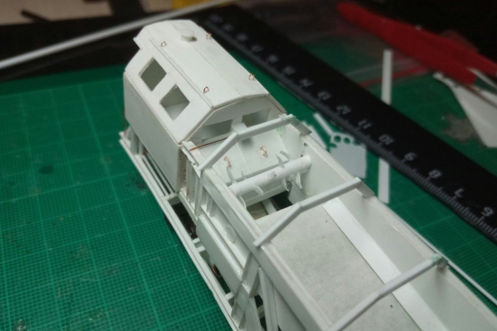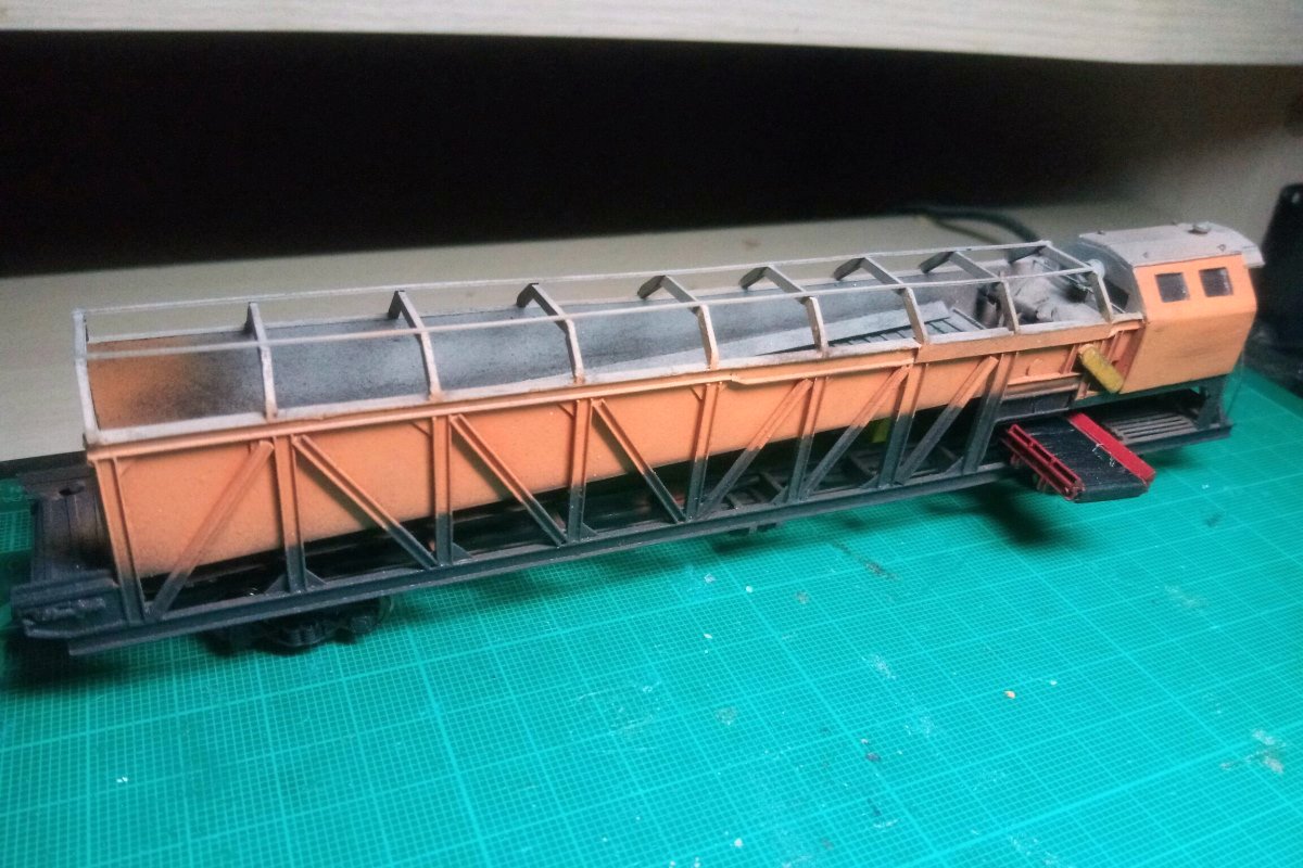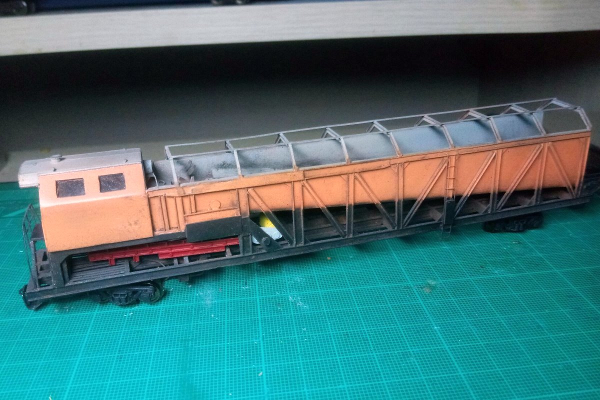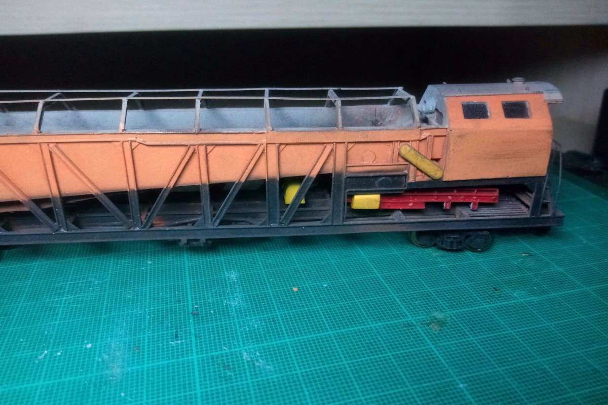Разновидности: модель выполнена в одном экземпляре Фирма-производитель: Туманов А. Год начала производства: 2015 Описание моделиМосковский моделист Андрей Туманов ведёт работу над стендовой моделью снегоуборочной машины СМ2Б. Модель выполнена из пластика и медной проволоки, использованы тележки ЦНИИ-Х30, серийно производимые фирмой "Пересвет". В начале 2016 г. завершена работа над промежуточным вагоном; в конце 2017 г. был готов концевой вагон, оборудованный динамическим (повторотным) элементом - боковым транспортёром для удаления снега за пределы пути. Другие модели снегоуборочной машины СМ2Б: - от Дм.Попова ("ТТ-ТТ") - малая серия; - от В.Прийменко (СМ2 со старотипной кабиной).