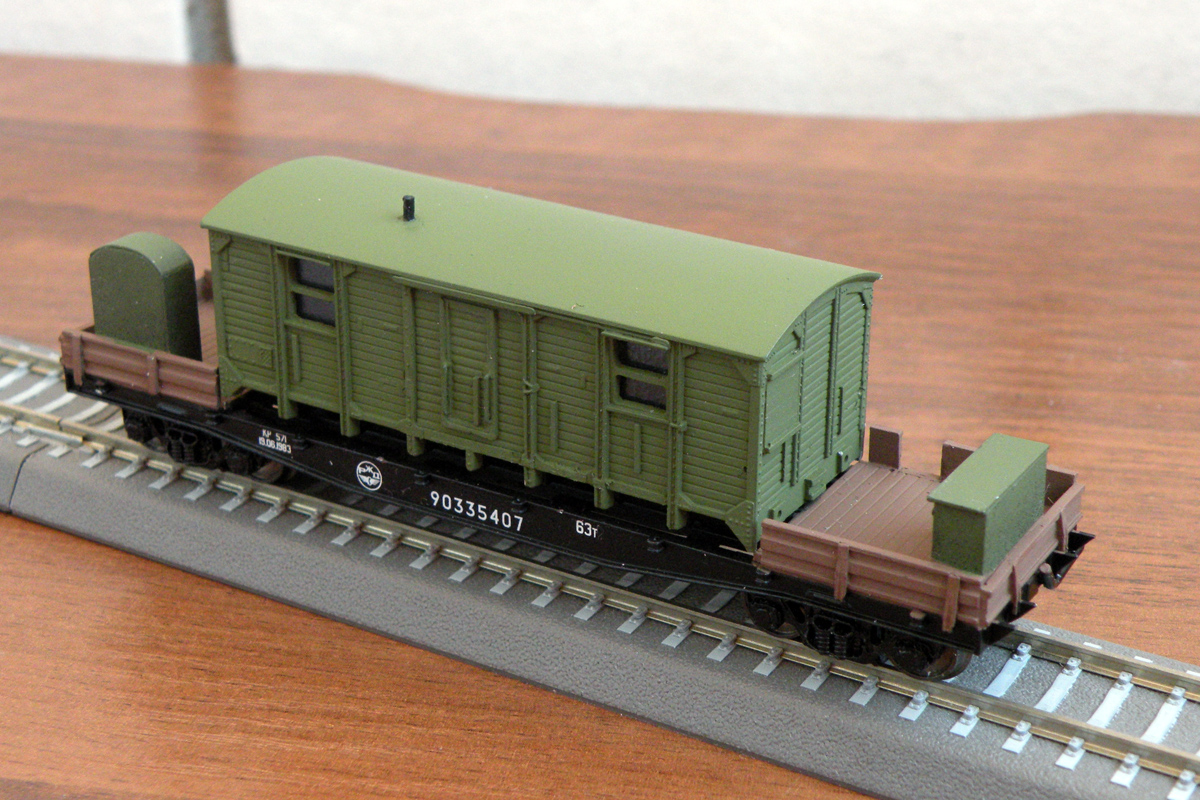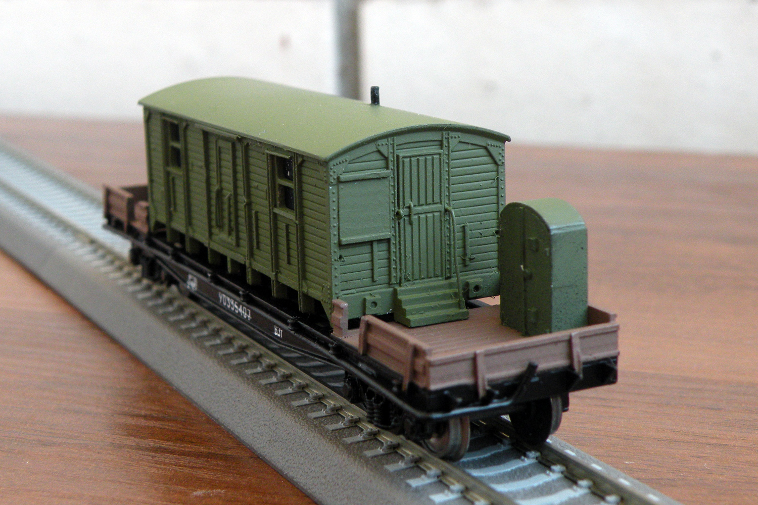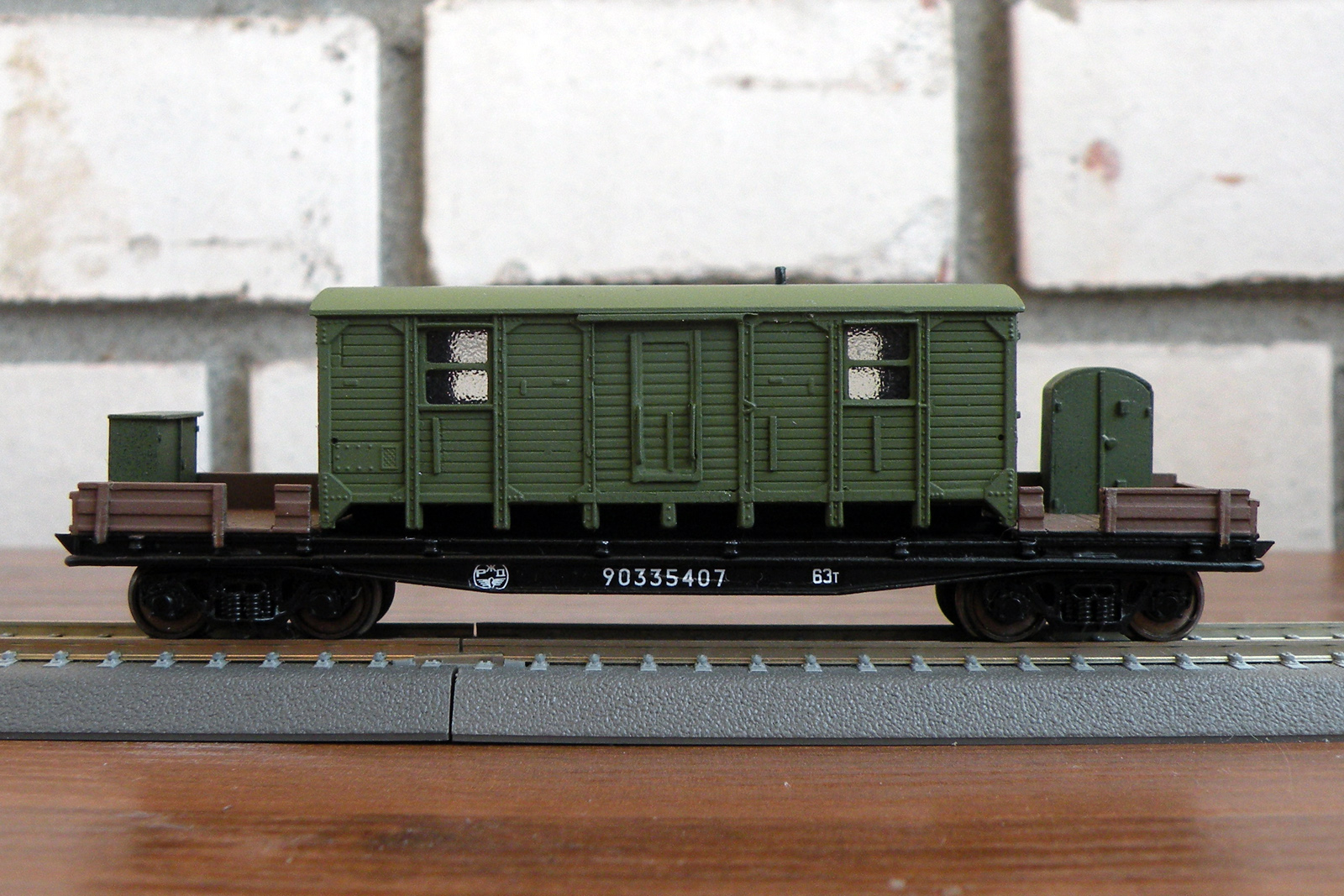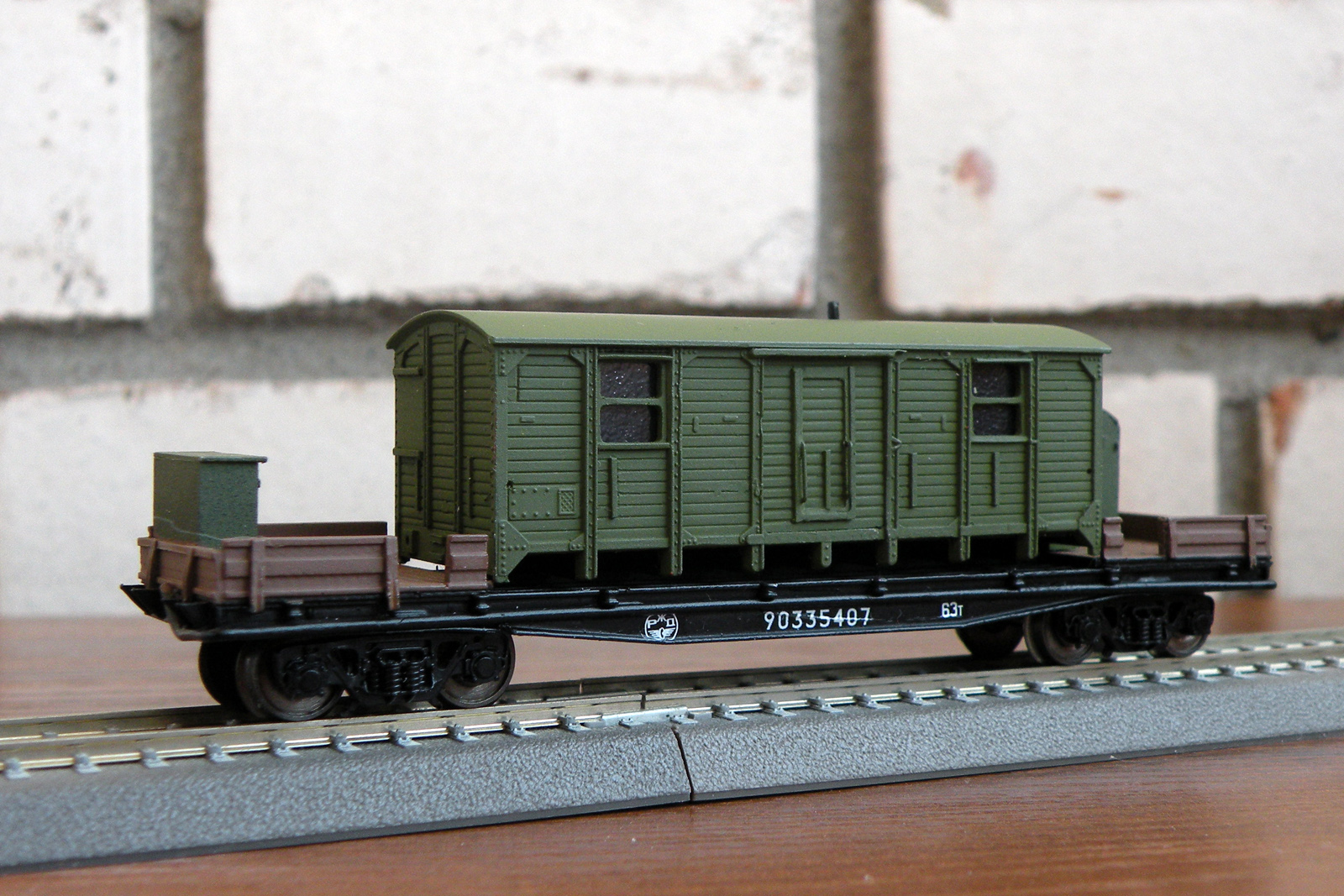 Разновидности: известно как минимум два экземпляра, различающихся конструктивными деталями Эпоха: V Принадлежность: РЖД Фирма-производитель: Попов_С. (Москва) Год начала производства: 2015 Описание моделиМодель турного вагона выполнена Сергеем Поповым (Москва). Для изготовления модели использованы: корпус крытого 2-осного немецкого вагона производства фирмы ВТТВ; рама 4-осной платформы, тележки и сцепки от фирмы "Пересвет". Остальные детали выполнены моделистом самостоятельно. Впервые модель экспонировалась на традиционной выставке в ЦМЖТ, Санкт-Петербург, в марте 2016 г.