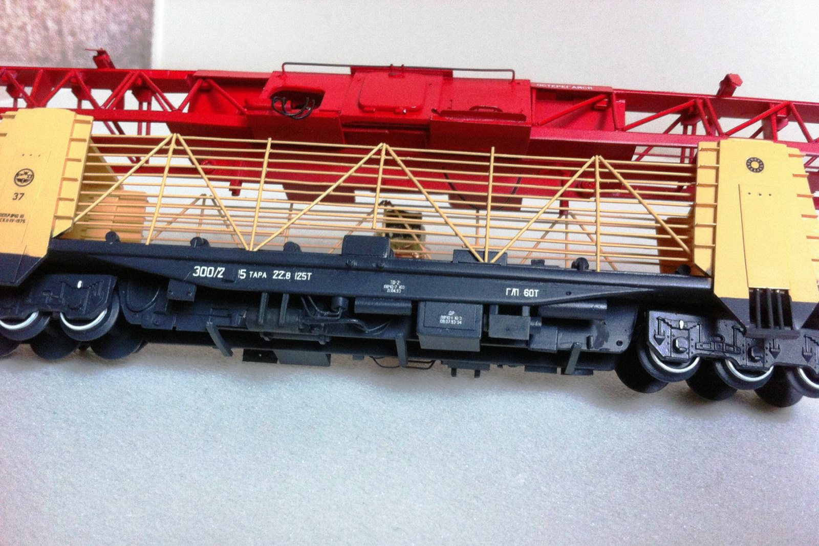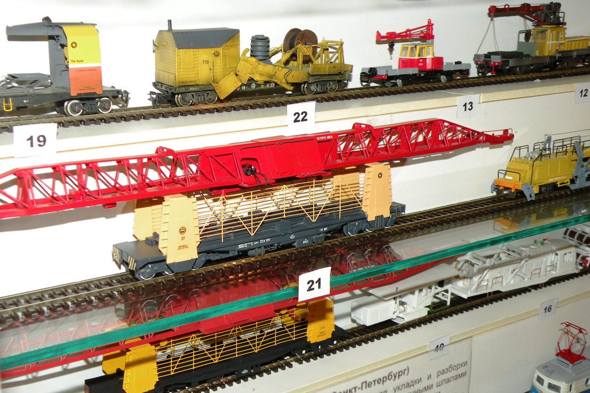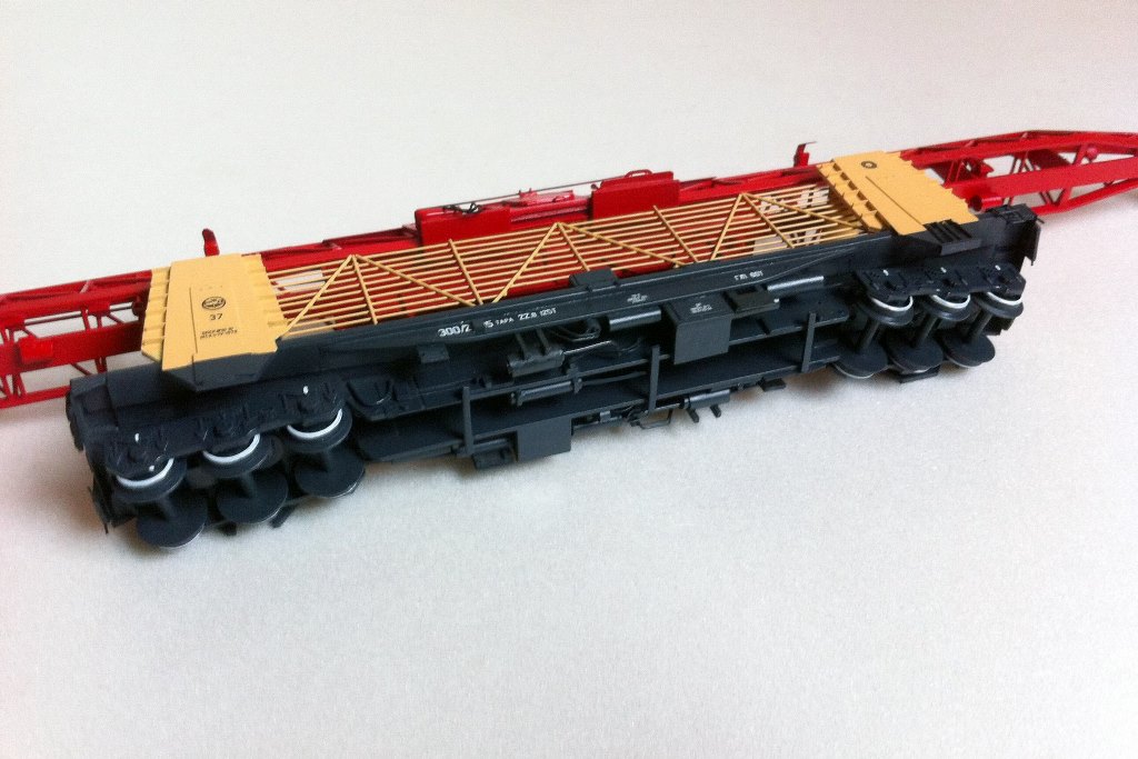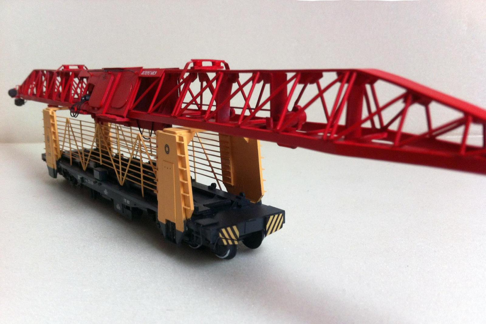 Разновидности: модель выполнена в одном экземпляре Эпоха: III Принадлежность: СЖД Фирма-производитель: Прийменко В. Год начала производства: 2017 Описание моделиМодель путеукладочного крана УК25 - авторская работа моделиста из Петербруга Вячеслава Прийменко, завершена к марту 2017 г. Модель выполнена, как обычно, "с нуля". Материалы корпуса - листовой полистирол разной толщины, ПВХ 1 мм и 1,5 мм, медная проволока различного диаметра. Использованы серийные трёхосные (крановые) тележки производства фирмы "Пересвет". Другие модели путеукладочного крана УК-25: - от "ES", Чехия (малосерийная модель); - от Н.Мосичева. Описание прототипаКран укладочный УК25/9 предназначен для укладки рельсошпальной решётки на подготовленное земляное полотно. В СССР строился в 1970-80-х гг. на заводе "Калугапутьмаш". Используется с моторными платформами МПД, предназначенными для транспортировки рельсошпальной решётки на участках работ. Один из таких кранов представлен в экспозиции музея Западно-сибирской железной дороги (ст. Сеятель, Новосибирск).