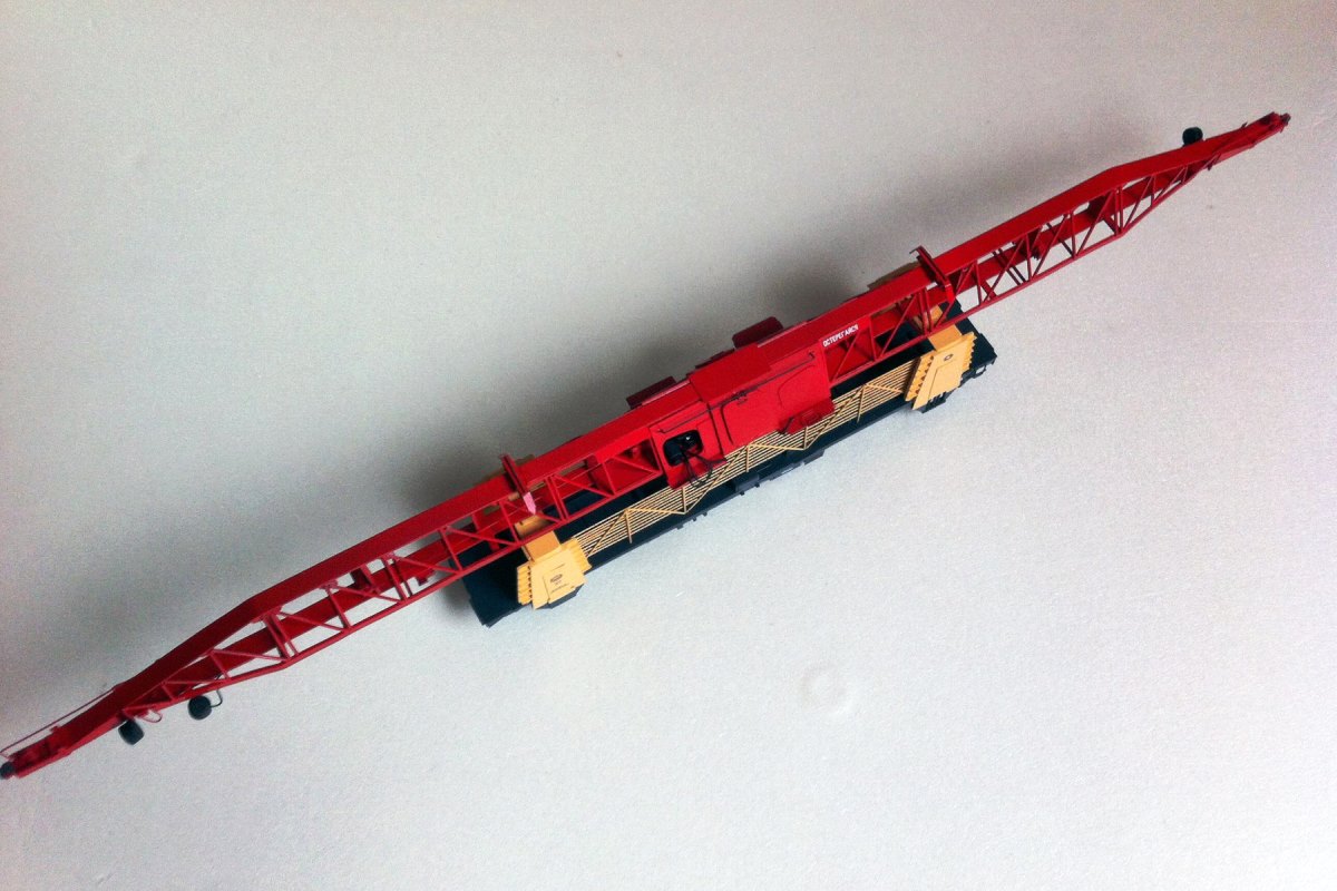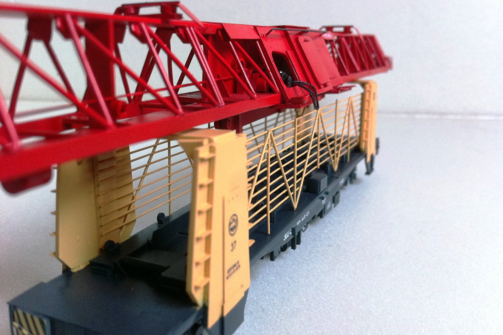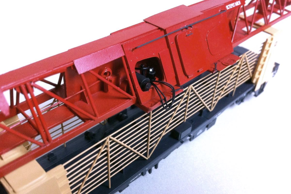 Разновидности: модель выполнена в одном экземпляре Эпоха: III Принадлежность: СЖД Фирма-производитель: Прийменко В. Год начала производства: 2017 Описание моделиМодель путеукладочного крана УК25 - авторская работа моделиста из Петербруга Вячеслава Прийменко, завершена к марту 2017 г. Модель выполнена, как обычно, "с нуля". Материалы корпуса - листовой полистирол разной толщины, ПВХ 1 мм и 1,5 мм, медная проволока различного диаметра. Использованы серийные трёхосные (крановые) тележки производства фирмы "Пересвет". Другие модели путеукладочного крана УК-25: - от "ES", Чехия (малосерийная модель); - от Н.Мосичева. Описание прототипаКран укладочный УК25/9 предназначен для укладки рельсошпальной решётки на подготовленное земляное полотно. В СССР строился в 1970-80-х гг. на заводе "Калугапутьмаш". Используется с моторными платформами МПД, предназначенными для транспортировки рельсошпальной решётки на участках работ. Один из таких кранов представлен в экспозиции музея Западно-сибирской железной дороги (ст. Сеятель, Новосибирск).