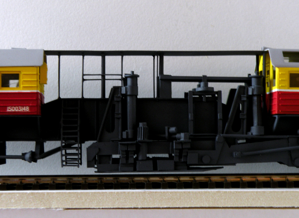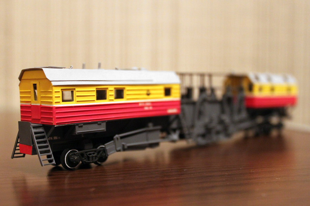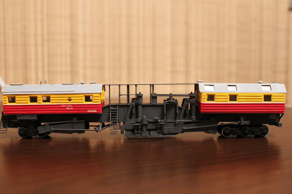 Разновидности: одна разновидность Эпоха: V Принадлежность: РЖД Фирма-производитель: Ходаков А. Год начала производства: 2013 Описание моделиМодель выправочно-подбивочно-отделочной машины ВПО-3000 выполнена петербургским моделистом А.Ходаковым вручную (из пластика). Впервые экспонированлась на выставке "Железнодорожная модель-2013" в ЦМЖТ. Модель находится в коллекции К.Виноградова (Санкт-Петербург). Описание прототипаВыправочно-подбивочно-отделочная машина — путевая машина непрерывного действия, выполняющая за один проход комплекс работ: дозировку и уплотнение балласта, подбивку, выправку и отделку железнодорожного пути. Применяется на железнодорожном транспорте при строительстве, ремонте и текущем содержании пути. Производительность — 3000 шпал/ч (осюда наименование серии). Транспортная скорость — 50 км/ч по главному, 25 км/ч на боковом пути.