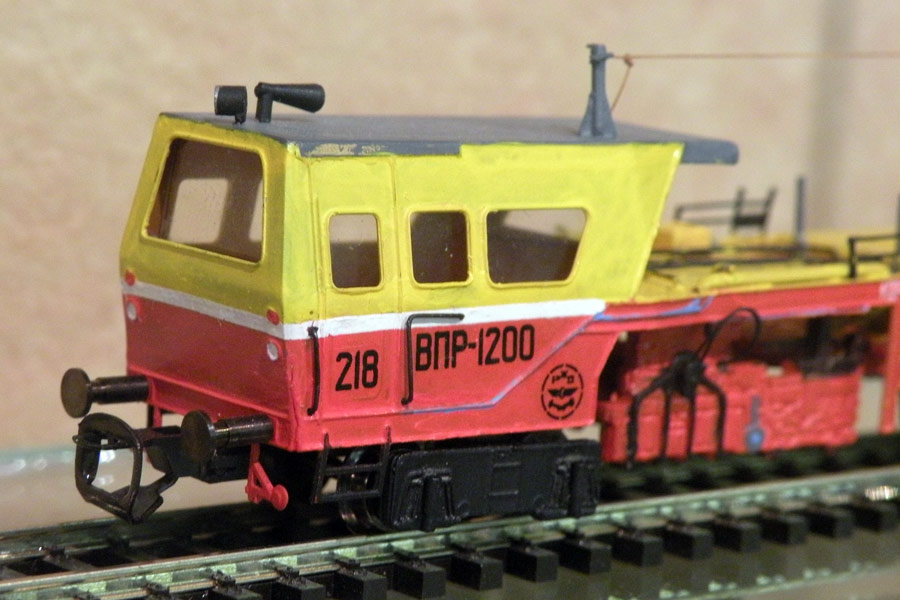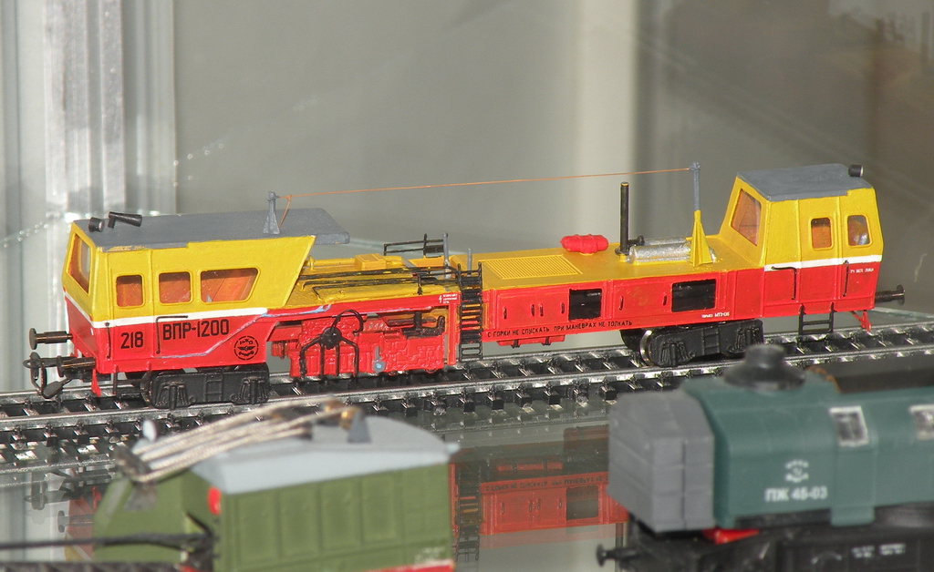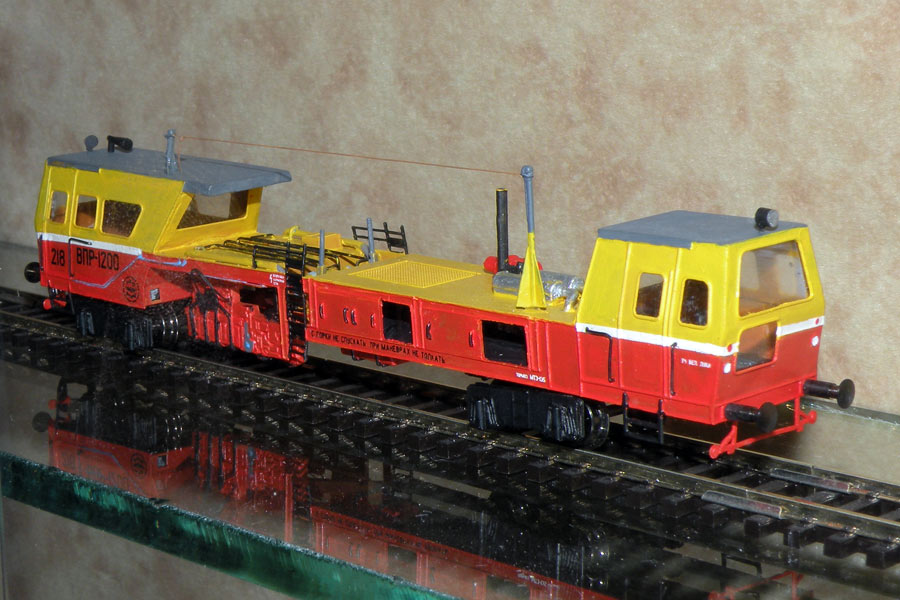 Эпоха: V Принадлежность: РЖД Фирма-производитель: М.Кечетов Год начала производства: 2008 Описание моделиМодель путевой машины ВПР1200 создана московским моделистом Михаилом Кечетовым с использованием модели путевой машины Duomatiс 08-32 (мелкосерийная модель из травленки). Модель ВПР1200 впервые экспонировалась на выставке в ЦМЖТ в 2008 г. Другие модели ВПР-1200: - от Вячеслава Прийменко; - от Сергея Иванова. Описание прототипаВПР1200 - выправочно-подбивочно-рихтовочная машина. В Новосибирском ж.д. музее в качестве экспоната находится машина ВПР1200 № 341, построенная в 1988 г. В Рижском ж.д. музее экспонируется машина ВПР1200 № 259.