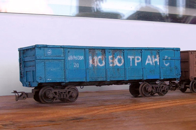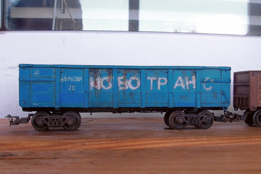 Разновидности: модель выполнена в единственном экземпляре Эпоха: V Принадлежность: РЖД (Новотранс) Фирма-производитель: Долматов О. Год начала производства: 2015 Описание моделиМодель 4-осного современного полувагона с глухим кузовом (мод.12-295Н) - работа моделиста моделиста из Нижнего Тагила Олега Долматова. Материалы кузова - листовой полистирол и ПВХ. Проработано подвагонное оборудование. Использованы типовые детали от фирмы "Пересвет" - тележки ЦНИИ-Х3О и сцепки. Окраска вагона, принадлежащего компании "Новотранс", выполнена в стиле "состаривания". Описание прототипа4-осный полувагон с глухим кузовом (мод.12-295Н) производится ОАО "Алтайвагон" с 1996 г. Грузоподъёмность - 70 т, тара вагона - 23 т. Нормативный срок службы вагона - 22 года.