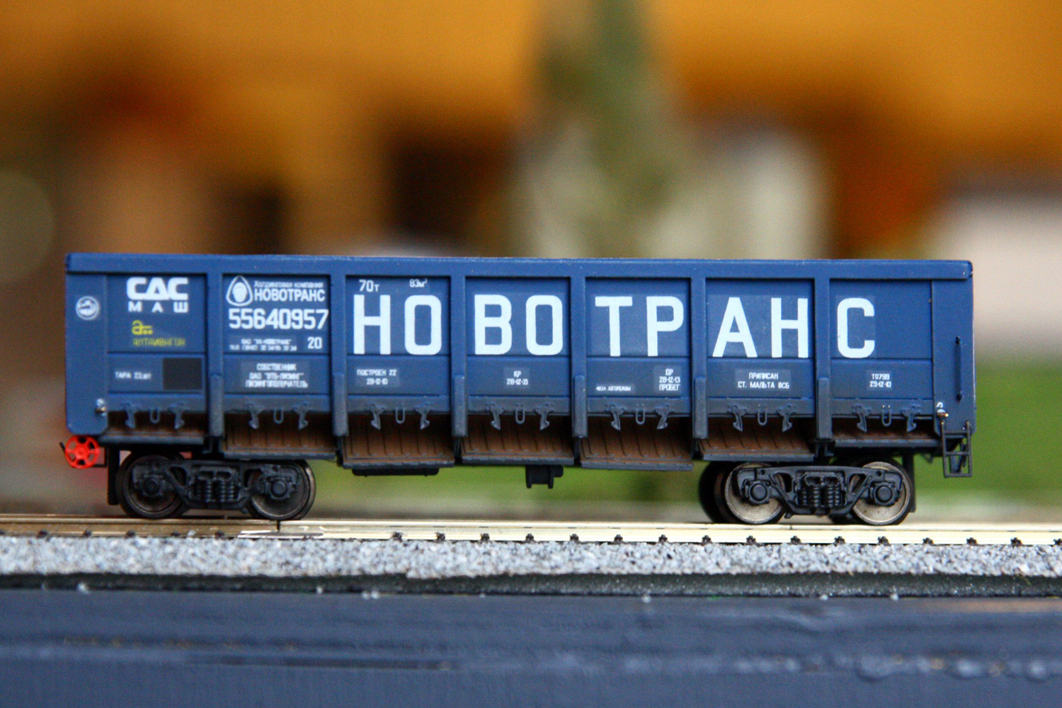 Разновидности: разные бортовые номера Эпоха: V Принадлежность: РЖД / "НОВОТРАНС" Фирма-производитель: Норкин-модель Год начала производства: 2016 Год окончания производства: производится по настоящее время Заказать модель: https://vk.com/norkin_model Описание моделиМодель современного полувагона мод. 12-296-01 производится Мануфактурой "Норкин-Модель" в качестве полностью готовой модели (с марта 2016 г., ограниченными сериями) и в качестве травлёных "китов" из латуни для самостоятельной сборки. Использованы тележки ЦНИИ-Х3О от фирмы "Пересвет". Тщательно и правдоподобно проработаны нижняя часть и внутренняя поверхность кузова (включая днище). Люки на модели могут быть открыты или закрыты в любом сочетании (на готовой модели каждый из люков фиксируется в определенном положении). Таким образом, вагон может быть представлен в различных исполнениях: "на ходу" (все люки закрыты") или "на разгрузке" (люки открыты полностью и частично). Готовая модель предлагается с шестью различными бортовыми номерами (различия есть и в других надписях, которыми богато украшены борта вагона, в полном соответствии с прототипами). Описание прототипа4-осный полувагон с откидными люками (мод. 12-132-03) серийно производится ООО "Алтайвагон" с 2004 г. Грузоподъёмность - 69,5 т. Торцевые стенки глухие. В полу 14 откидных люков (по 7 с каждой стороны).
