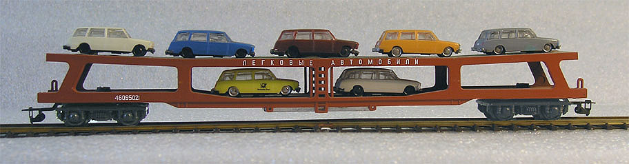 Разновидности: одна разновидность. Эпоха: IV Принадлежность: СЖД Фирма-производитель: Пересвет Год начала производства: 1998 Год окончания производства: 1998 Описание моделиМодель выпускалась на основе деталей корпусов моделей вагонов для перевозки автомобилей европейских ж.д., предоставленных Г.Крюгером и поныне имеющихся в ассортименте фирмы "ТТ-Модель". На модели использованы тележки производства "Пересвет", аналогичных тележкам рефрежираторных вагонов. Деталировка модели позволяет отнести её к категории "юниорской". Выпушена малая серия в несколько десятков экземпляров.
