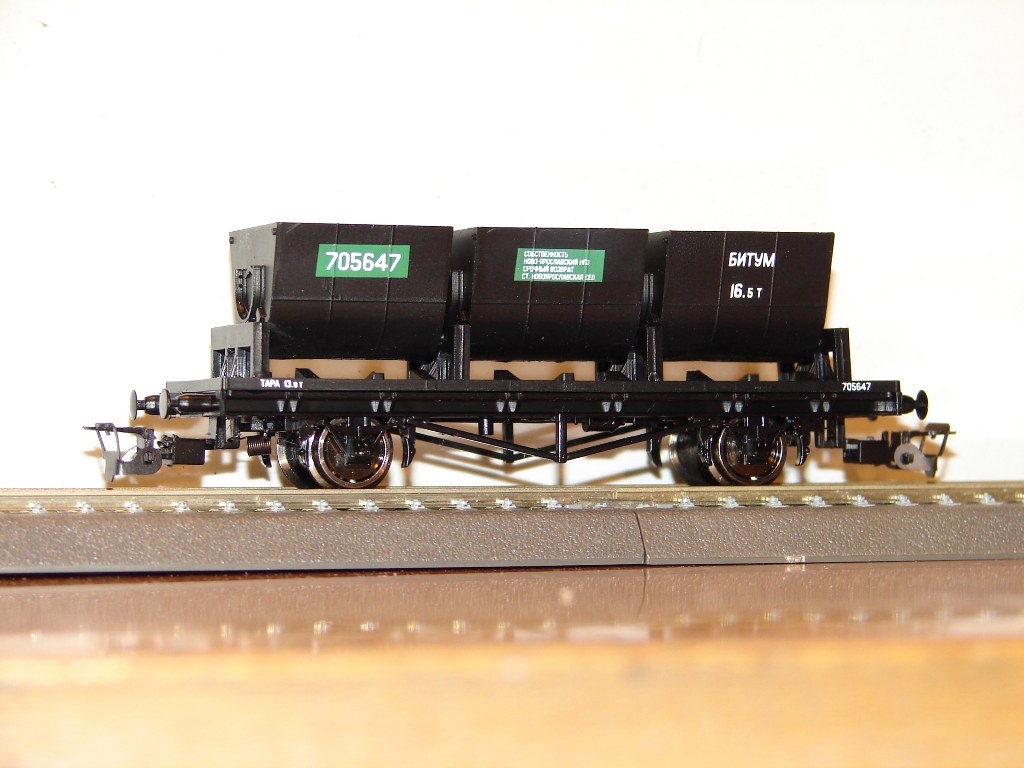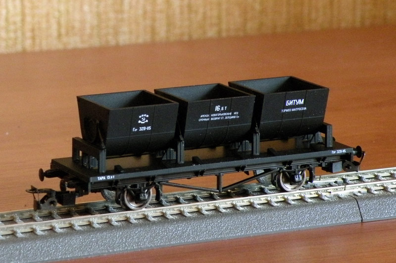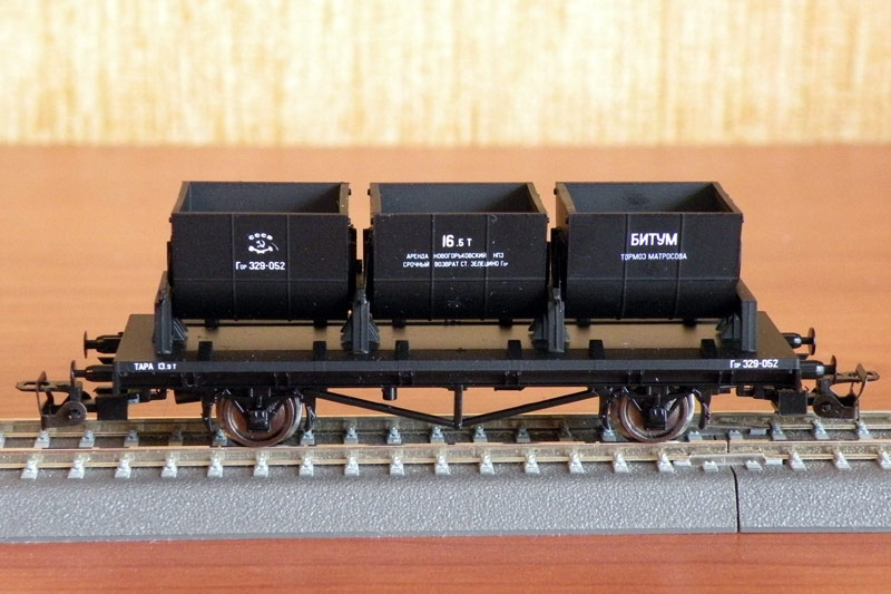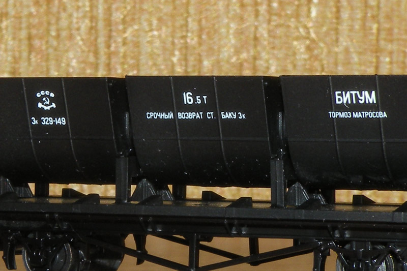 Разновидности: номера, приписка. Эпоха: III Принадлежность: СЖД Фирма-производитель: Пересвет Год начала производства: 2010 Год окончания производства: Производится по настоящее время Артикул: 3400, 3430 Описание моделиНабор из трех вагонов для перевозки битума производится фирмой "Пересвет" с марта 2010 г. Представлены вагоны СЖД (Гор.ж.д.) в аренде Новогорьевского МТЗ, с тремя разными номерами. Модель (как и прототип) выпускается на ходовой базе 2-осной платформы, появившейся в производственной программе "Пересвета" с конца 2008 г. Вагоны-битумники снабжены накладными металлическими деталями, приклеить которые предлагается самостоятельно. С апреля 2010 г. выпускается одиночный вагон-битумник СЖД (арт. 3430) с новым номером и другой припиской (Закавсказская ж.д., срочный возврат на ст. Баку).