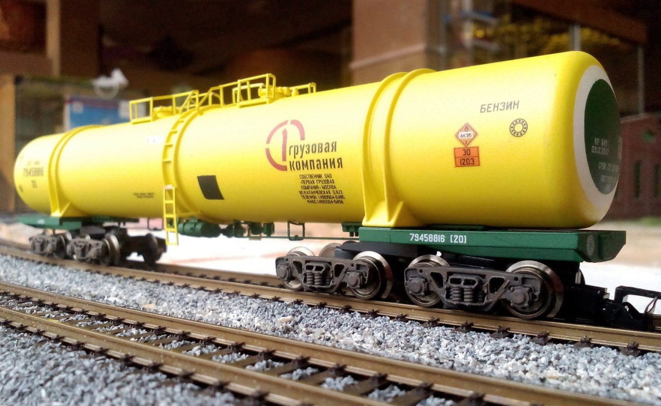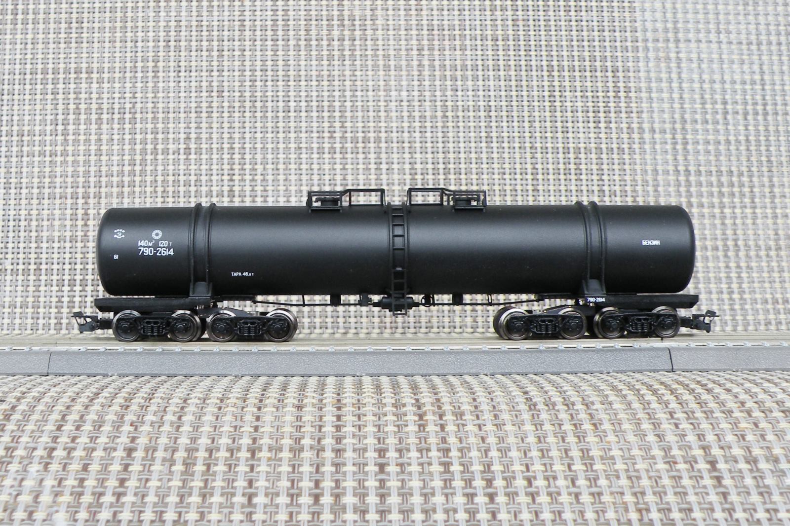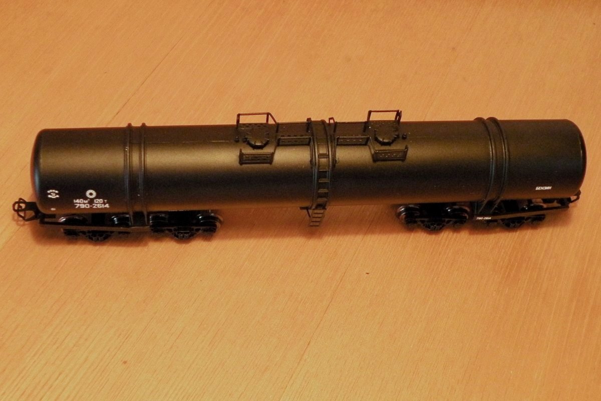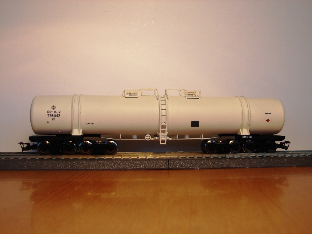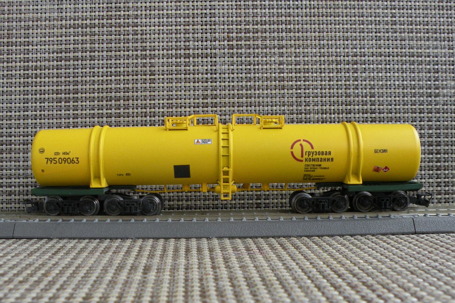 Эпоха: IV-V Принадлежность: СЖД, РЖД, БЧ Фирма-производитель: Пересвет Год начала производства: 2016 Артикул: 3750, 3751, 3752, 3753, 3754, 3755 Описание моделиПилотный образец серийной модели 8-осной цистерны для перевозки нефтепродуктов петербургская фирма "Пересвет" впервые продемонстрировала в дни традиционной выставки в ЦМЖТ (СПб) в марте 2016 г. Первая партия моделей - чёрная цистерна с надписями IV эпохи (арт. 3750) - появилась в продаже в конце лета 2016 г. В марте 2017 г. поступила в продажу бежевая цистерна, IV эпоха (арт. 3751). Модель в бежевой окраске с надписями, характерными для V эпохи (арт. 3752) появилась в продаже в конце февраля 2019 г.. В июне 2020 г. появилась в продаже модель в окраске Белорусской железной дороги БЧ (арт. 3754). Окраска и надписи соответствуют пятой модельной эпохе, конструктивно цистерна не отличается от ранее выпущенных вариантов. В феврале 2024 г. появилась в продаже модель в в версии "Лукойл" пятой модельной эпохи. Артикул модели 3755. Конструкция ходовой части модели обеспечивает прохождение радиусов: на подъёмах и спусках - 310 мм, на горизонтали - 286 мм. Другие модели восьмиосной цистерны: - от "Б.В.-Ж.Д." (малая серия); - от К.Виноградова; - от В.Дерунова; - от Д.Телепова.