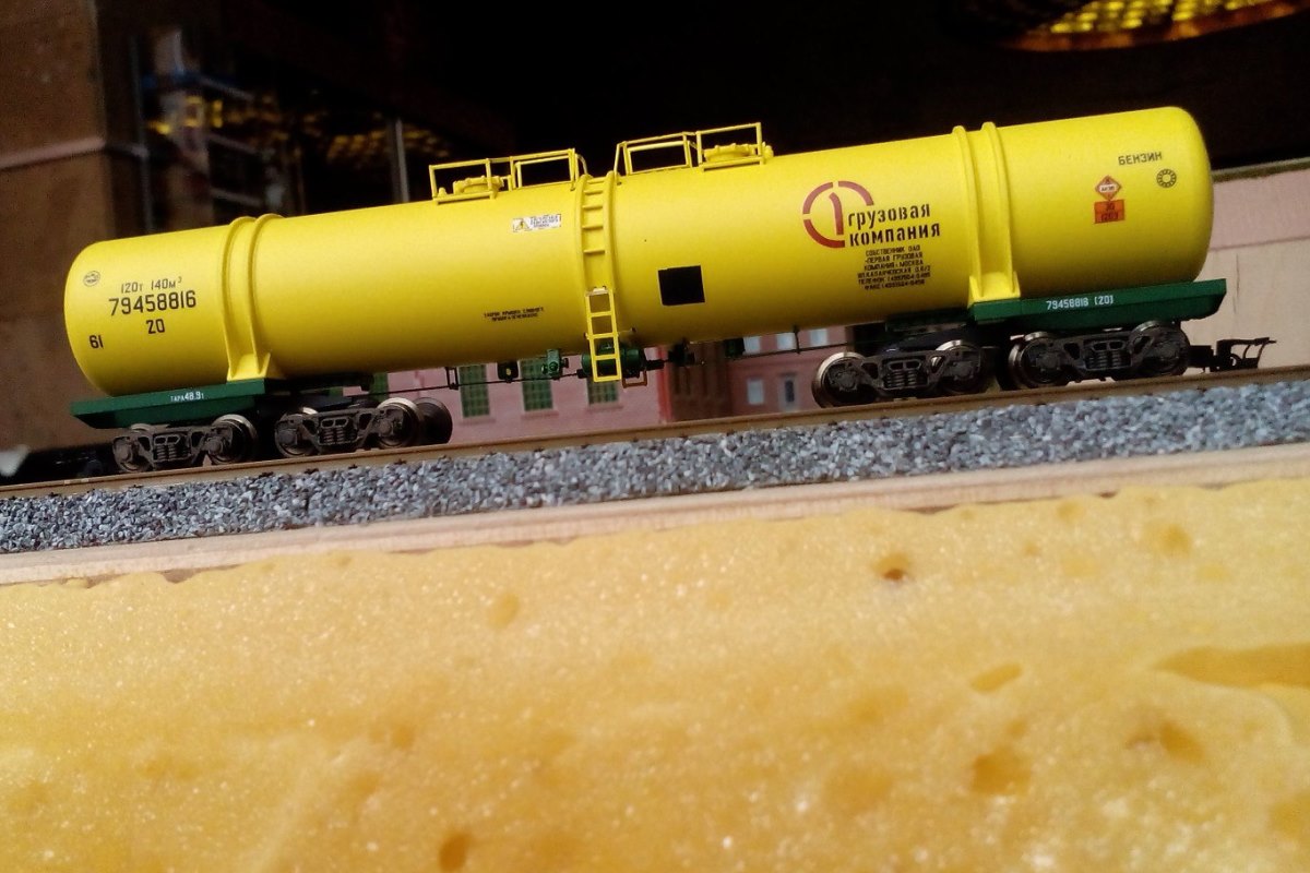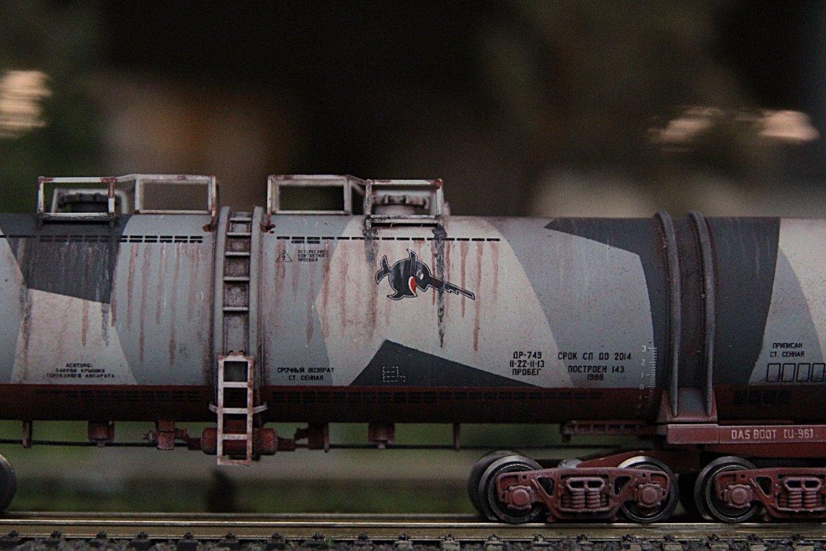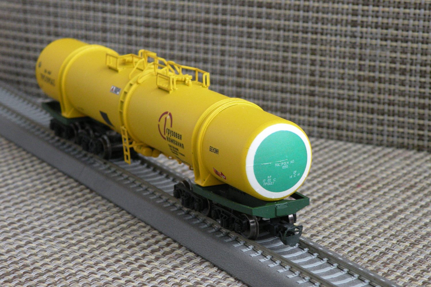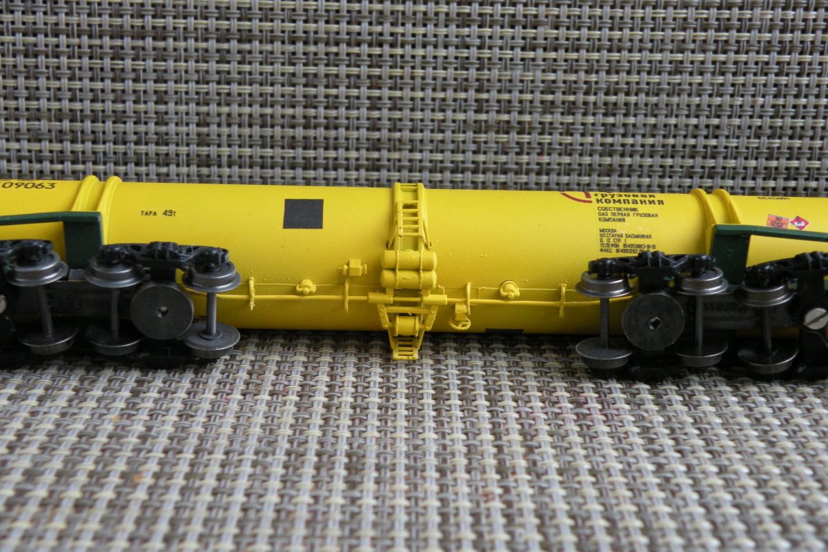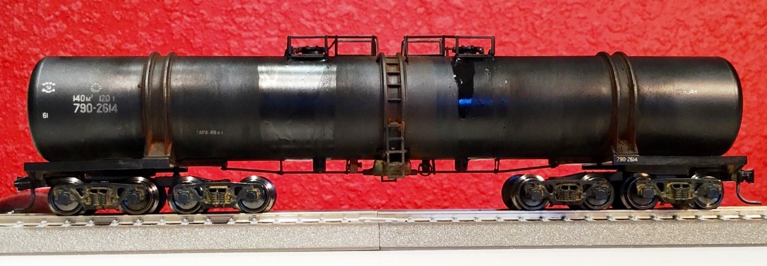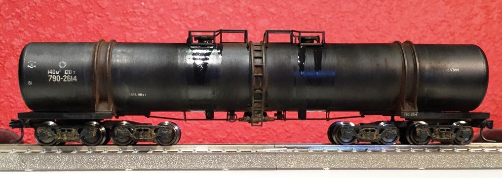 Эпоха: IV-V Принадлежность: СЖД, РЖД, БЧ Фирма-производитель: Пересвет Год начала производства: 2016 Артикул: 3750, 3751, 3752, 3753, 3754, 3755 Описание моделиПилотный образец серийной модели 8-осной цистерны для перевозки нефтепродуктов петербургская фирма "Пересвет" впервые продемонстрировала в дни традиционной выставки в ЦМЖТ (СПб) в марте 2016 г. Первая партия моделей - чёрная цистерна с надписями IV эпохи (арт. 3750) - появилась в продаже в конце лета 2016 г. В марте 2017 г. поступила в продажу бежевая цистерна, IV эпоха (арт. 3751). Модель в бежевой окраске с надписями, характерными для V эпохи (арт. 3752) появилась в продаже в конце февраля 2019 г.. В июне 2020 г. появилась в продаже модель в окраске Белорусской железной дороги БЧ (арт. 3754). Окраска и надписи соответствуют пятой модельной эпохе, конструктивно цистерна не отличается от ранее выпущенных вариантов. В феврале 2024 г. появилась в продаже модель в в версии "Лукойл" пятой модельной эпохи. Артикул модели 3755. Конструкция ходовой части модели обеспечивает прохождение радиусов: на подъёмах и спусках - 310 мм, на горизонтали - 286 мм. Другие модели восьмиосной цистерны: - от "Б.В.-Ж.Д." (малая серия); - от К.Виноградова; - от В.Дерунова; - от Д.Телепова.
