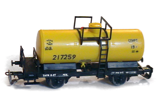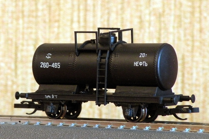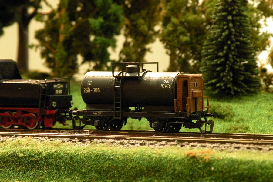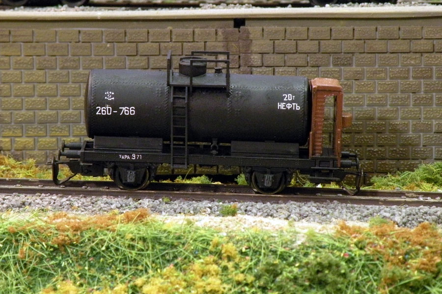 Разновидности: цветовые и конструктивные Эпоха: III Принадлежность: СЖД или промышл. Фирма-производитель: разные производители Описание моделиВ наследство фирме Tillig от прекратившей своё существование фирмы JaTT перешла, среди прочих, модель 2-осной цистерны с тормозной площадкой (арт. 95819 и др.), чрезвычайно распространённой как среди ж.д. Германии II-III эпох, так и среди трофейного подвижного состава советских железных дорог послевоенной поры. В связи с этим модель послужила основой для целого ряда конверсий (Р.Мишин, И.Сергеев, С.Антонов и др.). Конверсия может предполагать, кроме удаления информационных табличек, принятых на немецких ж.д. и нанесения новых надписей, - замену букс, изменение формы тормзной площадки и пр. Описание прототипаОдин из образцов подобной цистерны можно найти в Московском музее истории ж.д. техники.
