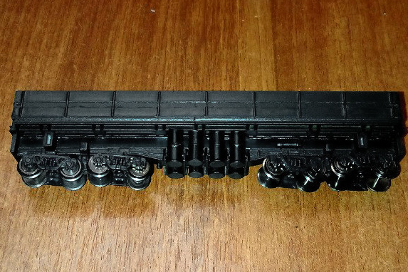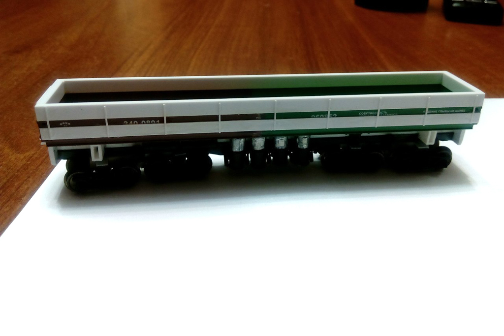 Эпоха: V Принадлежность: промышленный Фирма-производитель: Дерунов В. Год начала производства: 2015 Описание моделиМодель современного 8-осного вагона-думпкара - авторская работа петербургского моделиста Владимира Дерунова. При изготовлении модели использованы отдельные детали (корпуса, рамы, цилиндры и др.) и их фрагменты от серийной модели 4-осного думпкара производства фирмы "Пересвет", а также новые детали, самостоятельно изготовленные моделистом их полистирола. Тележки ЦНИИ-Х3О от "Пересвета". Описание прототипа8-осный вагон-самосвал (думпкар) мод. 34-9023 предназначен для перевозки горной массы плотностью 1,75-4,0 тн/куб.м по промышленным железнодорожным путям горнорудных предприятий. Грузоподъемность - 150 т. Масса тары - 70 т. Производился на Стахановском вагоностроительном заводе с 1997 г.