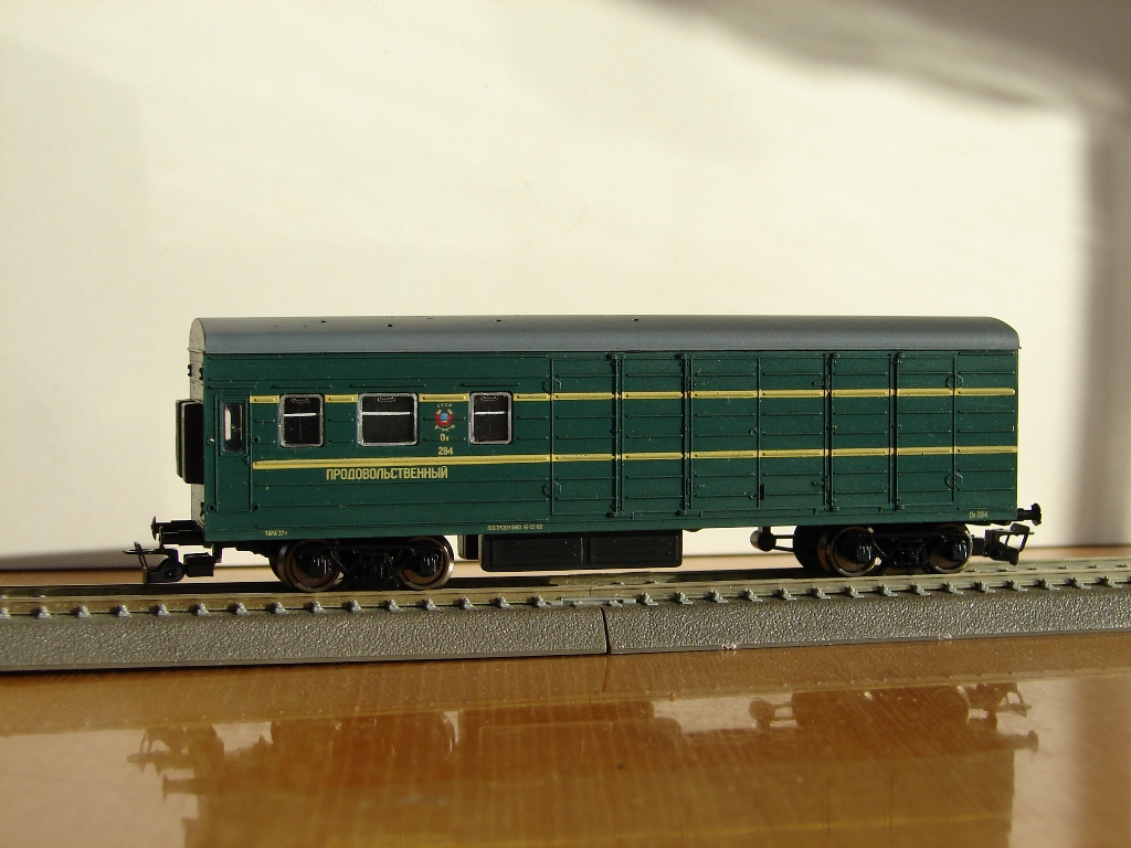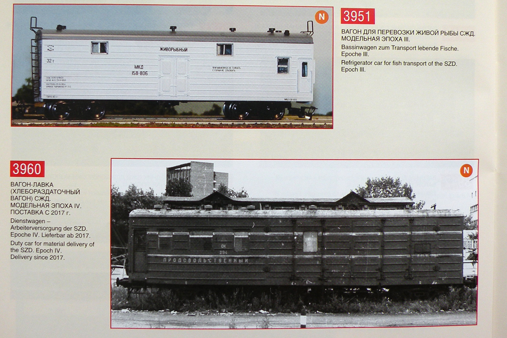 Разновидности: Хлебораздаточный вагон, багажный вагон Эпоха: IV Принадлежность: СЖД Фирма-производитель: Пересвет Год начала производства: 2019 Артикул: 3960, 3961, 3962 Описание моделиМодель хлебораздаточного вагона заявлена в производственной программе фирмы "Пересвет" на 2017 г. В марте 2016 г., во время традиционной выставки в ЦМЖТ (СПб), был представлен предварительный образец модели - неокрашенный корпус. В марте 2017 г. модель демонстрировалась почти готовой (без некоторых накладных деталей и без надписей). Модель поступила в продажу в марте 2019 г. В модели используются днище крытого 4-осного вагона. На первом варианте этого вагона (хлебораздаточном) использовались тележки МТ-50, на багажном вагоне - тележки ЦНИИ-Х3О. Производство модели - на основе серийной технологии (литьё из пластика). В ноябре 2020 г. поступила в продажу новинка - вагон-лавка СЖД, используемый как багажный вагон. Окраска и надписи соответствуют четвёртой модельной эпохе. Артикул модели - 3961. От ранее выпущенных вариантов этот вагон отличается тележками ЦНИИ-ХЗО на роликовых подшипниках. Другие модели хлебораздаточного вагона: - от "SH-TT" (малая серия). Описание прототипаВагон-лавка с цельнометаллическим кузовом, известный под названием "хлебораздаточного" - пожалуй, наиболее загадочный вагон в товарном парке СЖД послевоенного периода. Точное происхождение вагона неизвестно. Все "хлебораздаточные" вагоны, поступившие на сеть СЖД, были выпущены Брянским машиностроительным заводом (БМЗ), единой партией в 1959-60 гг. по требованию неизвестного заказчика. Предполагается, что таким заказчиком выступало оборонное ведомство, которое, однако, от этих вагонов в итоге отказалось (после чего они и были перепрофилированы в "хлебораздаточные"). Некоторые особенности конструкции данных вагонов говорят о том, что первоначально они имели отнюдь не гражданское назначение. Какое именно - до сих пор остаётся загадкой для любителей железных дорог. О хлебораздаточных вагонах на форуме SkaleTrainsClub: ссылка.