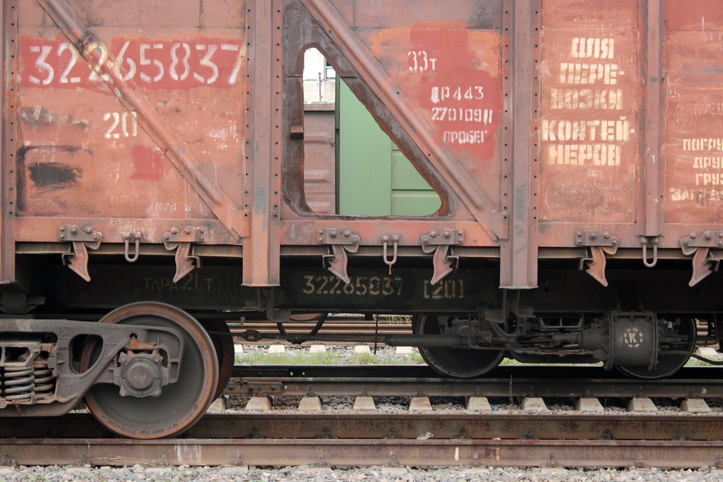 Кадр 2. Выпил в стенке полувагона, переделанного для перевозки контейнеров.