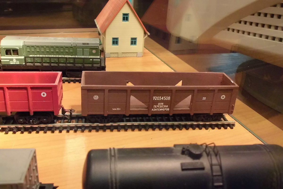 Кадр 1. Модель полувагона, переделанного для перевозки контейнеров (О.Балакин).