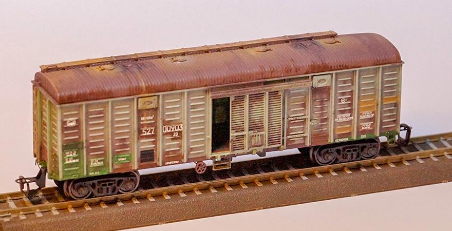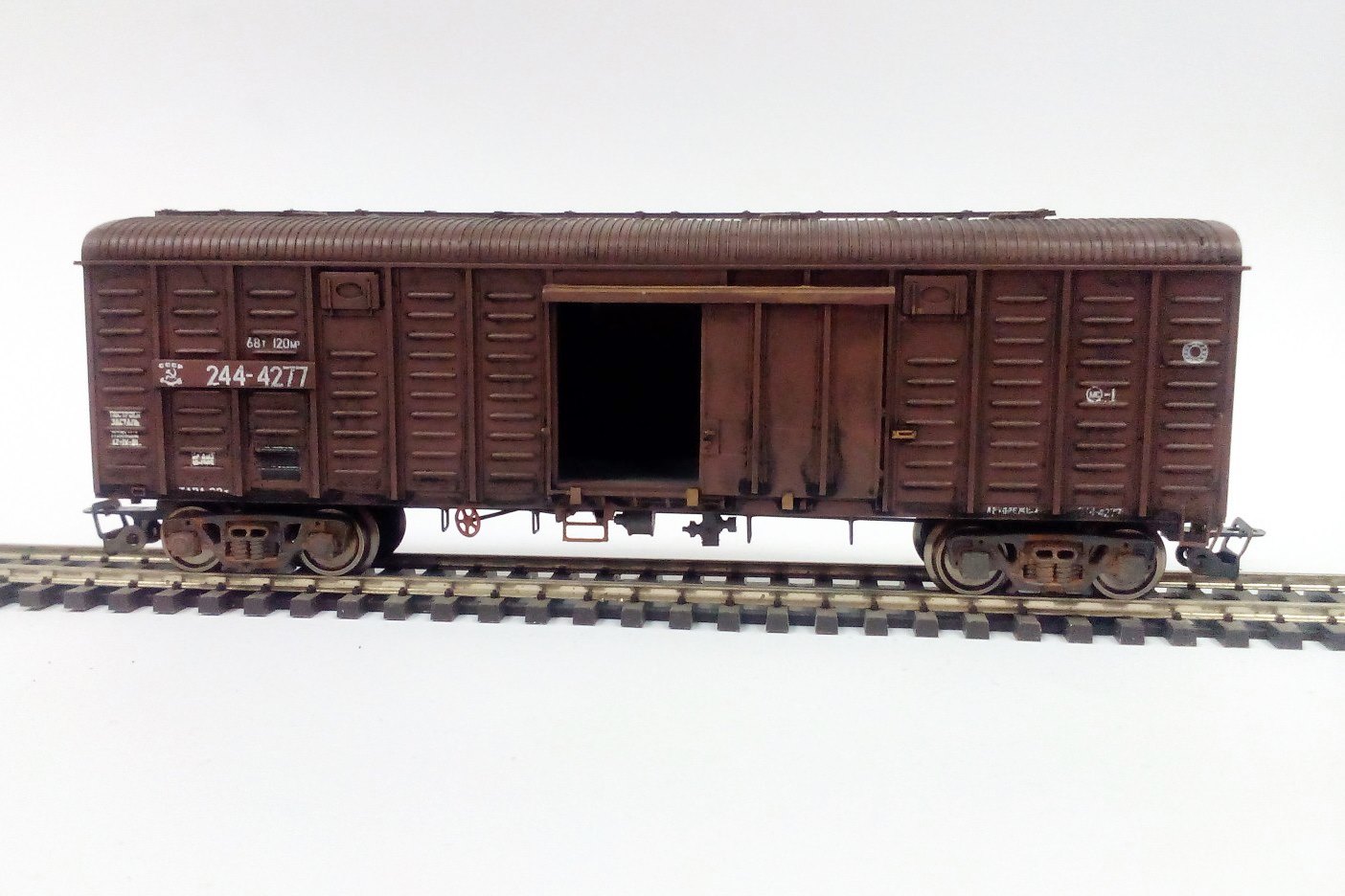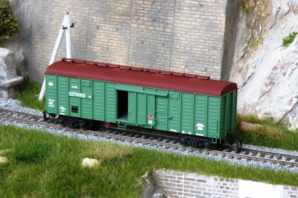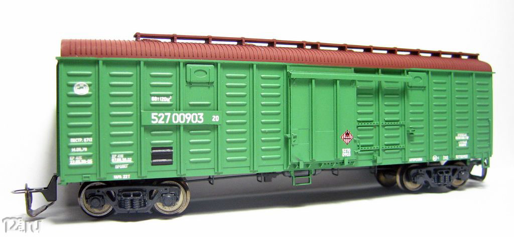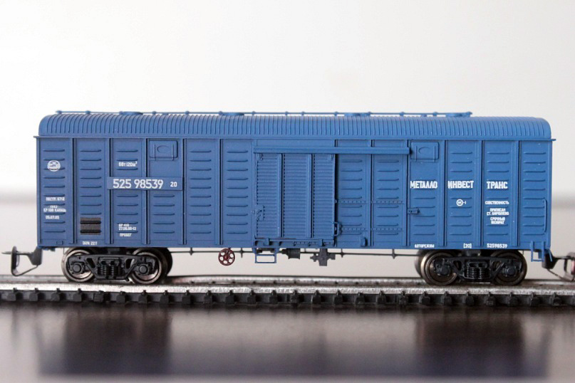 Разновидности: цвет, эпоха, принадлежность Эпоха: IV, V Принадлежность: СЖД, РЖД Фирма-производитель: ТТ-ТТ Год начала производства: 2011 Год окончания производства: малая серия Описание моделиМодель выполнена по традиционной для производителя технологии, с высокой степенью деталировки (хорошо проработано даже подвагонное оборудование; на модели открываются двери). Установлены тележки ЦНИИ-Х30 производства фирмы «Пересвет» и съёмные сцепки от Tillig. Известны следующие разновидности моделей: синий "МеталлоИнвестТранс", коричневый СЖД. Как и другие модели от "ТТ-ТТ", эта модель выпушена минимальной партией по индивидуальным заказам. В 2025 году Юрий Ватулин вернулся к работе по выпуску моделей. Для начала он восстановил производство крытых вагонов серии 11-К001. Конструктивно модели не изменились, они предлагаются в разных вариантах деталировки - могут отличаться крыши, двери, обшивка стен. Вся первая партия состоит из "состаренных" вагонов. Надписи и обозначения соответствуют четвёртой или пятой эпохе.