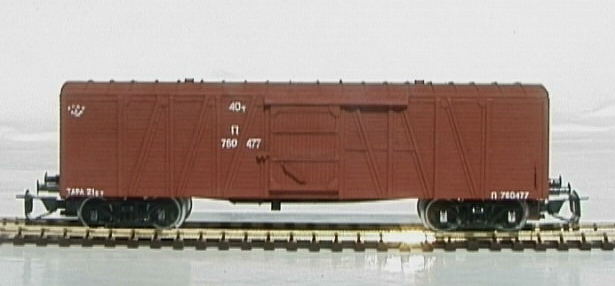 Разновидности: одна разновидность Эпоха: III Принадлежность: СЖД Фирма-производитель: А.Мурашов Описание моделиМодель крытого товарного вагона "американского" типа грузоподъёмностью 40 т создана моделистом из Наро-Фоминска Алексеем Мурашовым и неоднократно демонстрировалась на выставках в Москве и в Санкт-Петербурге. В модели использованы тележки типа "Даймонд" производства фирмы "Пересвет".