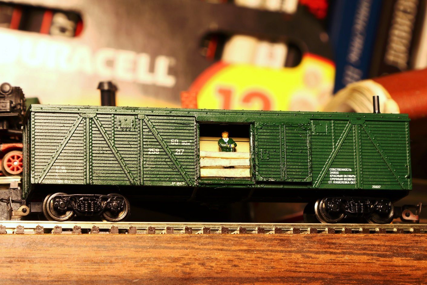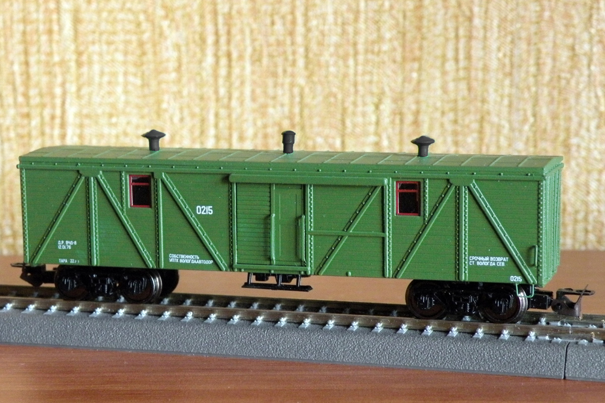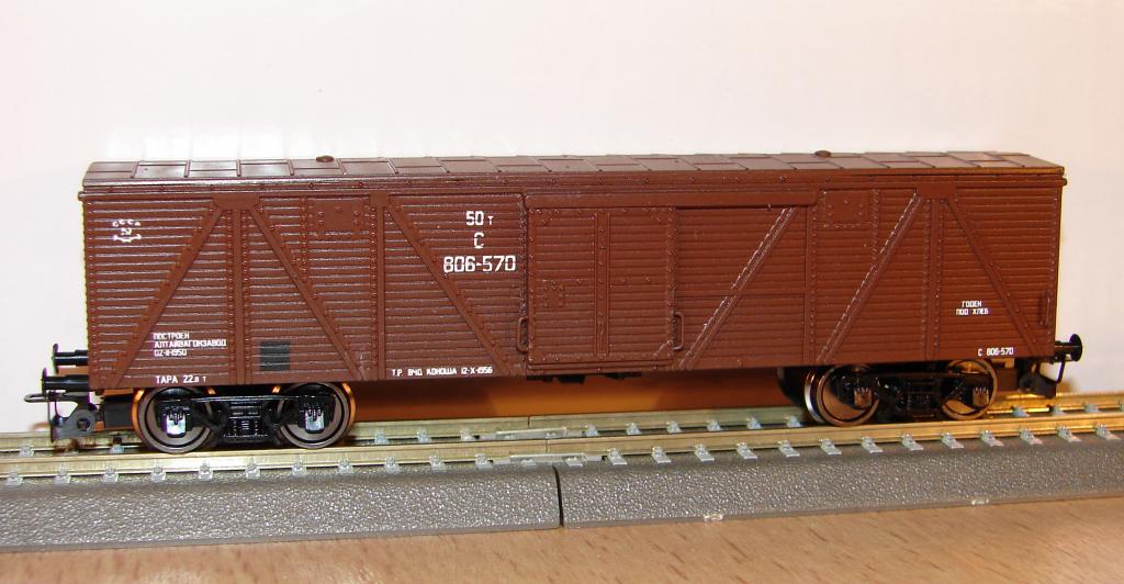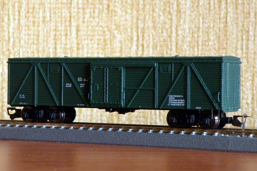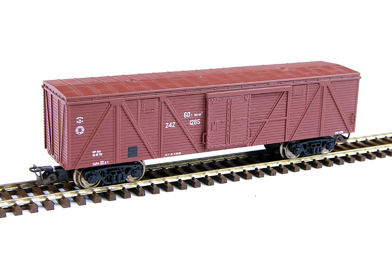 Разновидности: три разновидности (цвет, эпоха, принадлежность, тележки, буфера) отечественных ж.д. и один вагон-"бригадник" с окнами. Существует также одна разновидность модели вагона принадлежности немецких ж.д. (DR) Эпоха: III-IV Принадлежность: СЖД, промышленное предприятие Фирма-производитель: Пересвет Год начала производства: 2005 Год окончания производства: производится до настоящего времени Артикул: 3510, 3512, 3513, 3604 (в наборе с думпкарами), 3501 (в наборе с вагоном "канадского типа") Описание моделиАрт. 3510 - вагон СЖД III модельной эпохи коричневого цвета на тележках "Даймонд". Арт. 3512 - вагон СЖД IV эпохи, коричневый, на тележках ЦНИИ-Х30, без буферов. Арт. 3513 - вагон с надписью "Собственность завод Красный Октябрь", зелёный, на тележках "Даймонд", без буферов. С 2010 г. в составе набора с двумя думпкарами выпускается модель вагона-"бригадника", переделанного из модернизированного крытого товарного вагона (IV эпоха, арт. набора - 3604). Другие модели крытого товарного вагона грузопод. 50 т: - тормозной от "Пересвета" (серийная модель); - от А.Мурашова; - от А.Загребельского. Описание прототипаКрытый 4-осный вагон с деревянной обшивкой кузова грузоподъёмностью 50 т (модель 11-38) производился в СССР в 1936-41 и 1946-54 гг. За всё время было произведено 48 630 единиц вагонов данной модели.