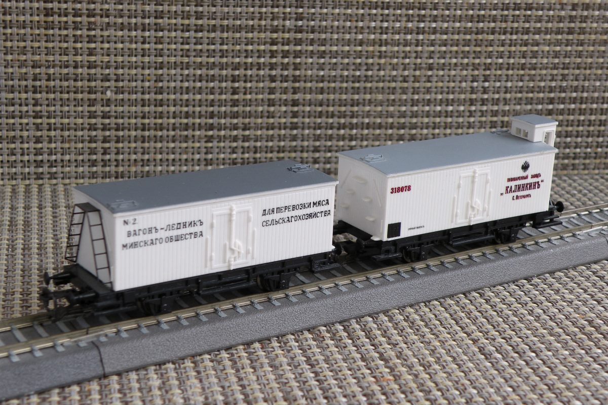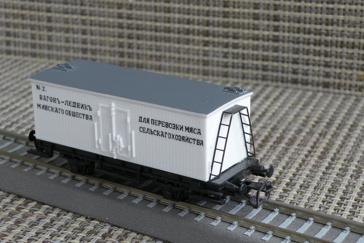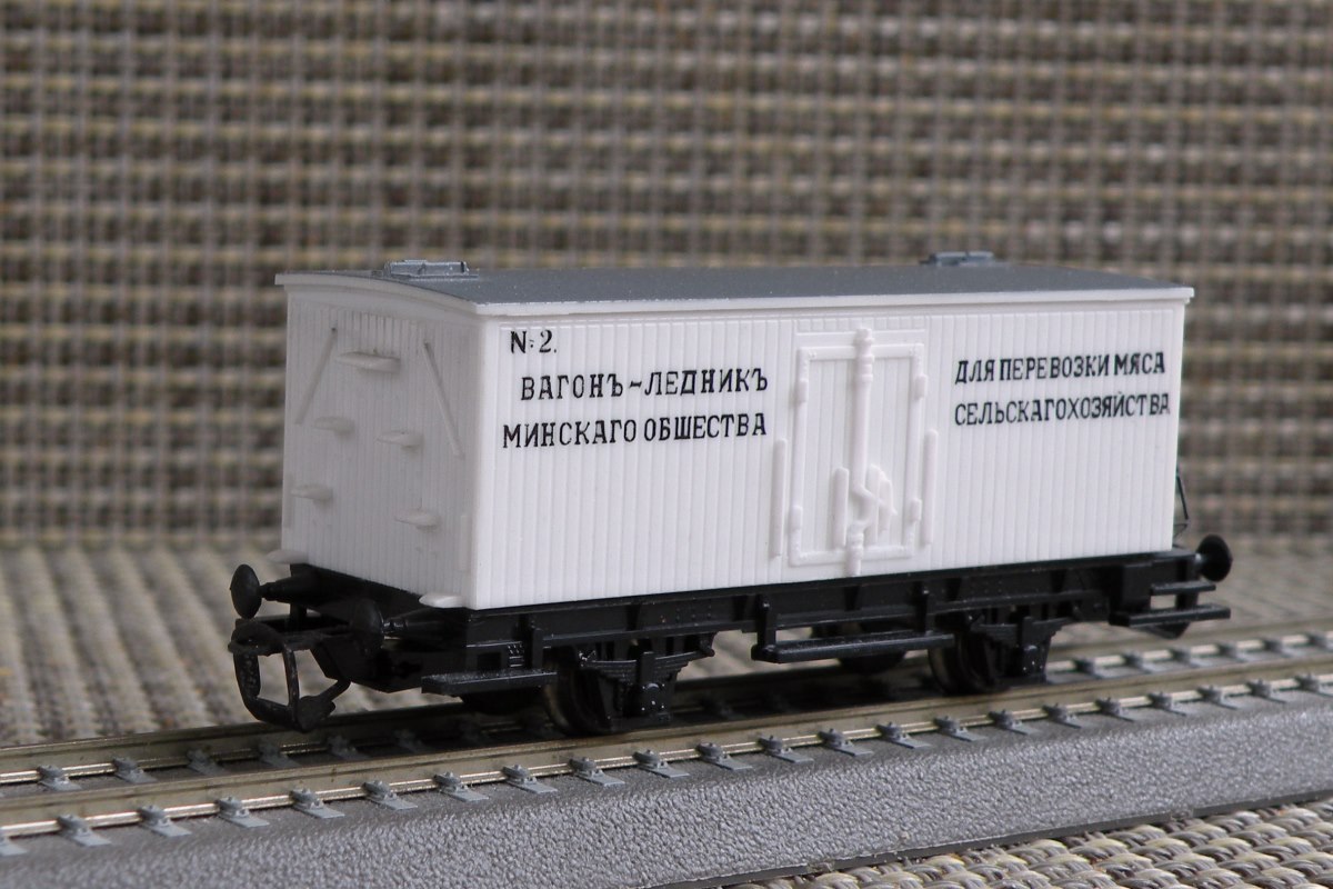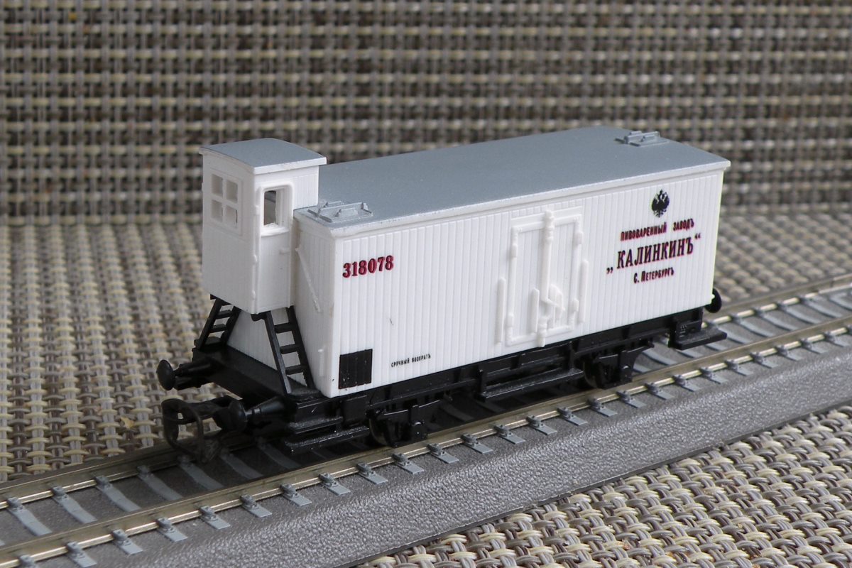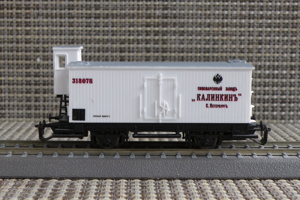 Разновидности: Две разновидности (с тормозной будкой и без неё), отличающиеся надписями Эпоха: I Принадлежность: Ж.д. Российской империи Фирма-производитель: PSK Год начала производства: 2002 Год окончания производства: 2007(?) Артикул: 772, 781 Описание моделиМодель 2-осного ледника немецкой постройки рубежа XIX-XX в. была выпущена довольно крупной серией голландской фирмой PSK. Модель имеет две конструктивных разновидности: с будкой тормозильщика ("скворечником"), пластмассовой лесенкой и тормозным оборудованием; без будки, с металлической лесенкой в конце вагона и без тормозного оборудования. Фирма PSK производила эти модели с различными надписями, как правило, характерными для немецких ж.д. I эпохи. Два вагона сделаны с русскими надписями: ледник с тормозной будкой - "пивоваренный заводъ "КАЛИНКИНЪ" С. Петербургъ" (арт. 772); ледник без тормозной будки - "вагонъ-ледникъ для перевозки мяса Минскаго общества сельскаго хозяйства" (арт. 781). Интересный факт: Модель ледника "Калинкинъ" - самая первая серийная модель отечественного товарного вагона в типоразмере ТТ. Чуть позже неё, в том же 2002 г., появился вагон-рефрежиратор СЖД от фирмы "Пересвет". Описание прототипаПрототип выпускался различными вагоностроительными заводами Европы в период 1870-1900 гг. Часть таких вагонов поставлялась в Россию. В ростовском железнодорожном музее представлен вагон-ледник дореволюционой постройки, несколько отличающийся от прототипа производимых моделей.
