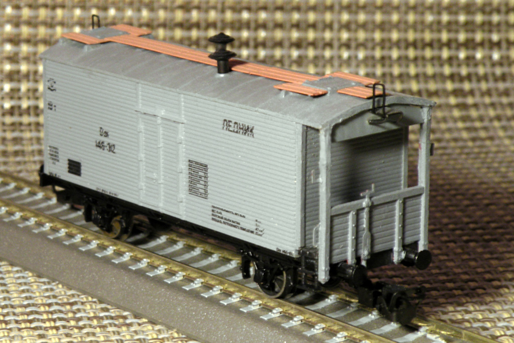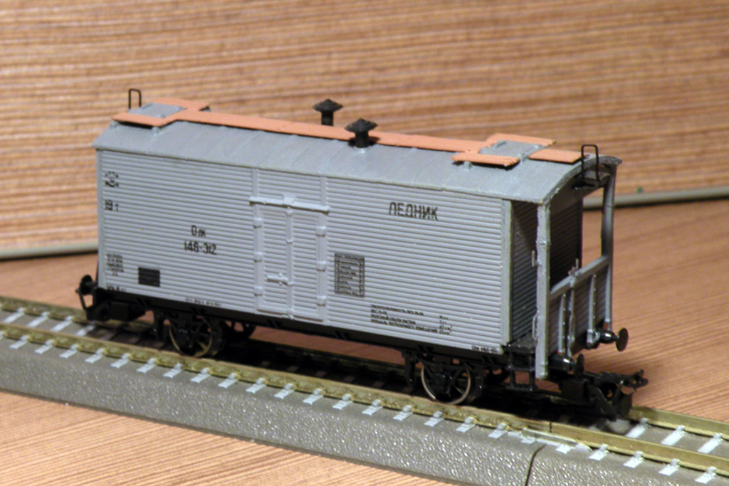 Разновидности: модель выполнена в единственном экземпляре Эпоха: III Принадлежность: СЖД Фирма-производитель: Сергеев И. Год начала производства: 2013 Описание моделиМодель 2-осного тормозного вагона-ледника выполнена петербургским моделистом Игорем Сергеевым в 2012 г. на базе серийной модели нетормозного ледника от фирмы "Пересвет". Другие модели 2-осного тормозного вагона-ледника: - от А.Мурашова.