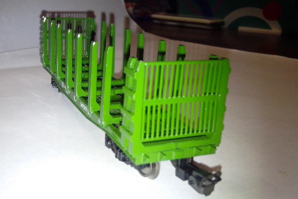 Кадр 1. Модель лесовозной платформы мод. 13-401-24, в зелёной окраске.