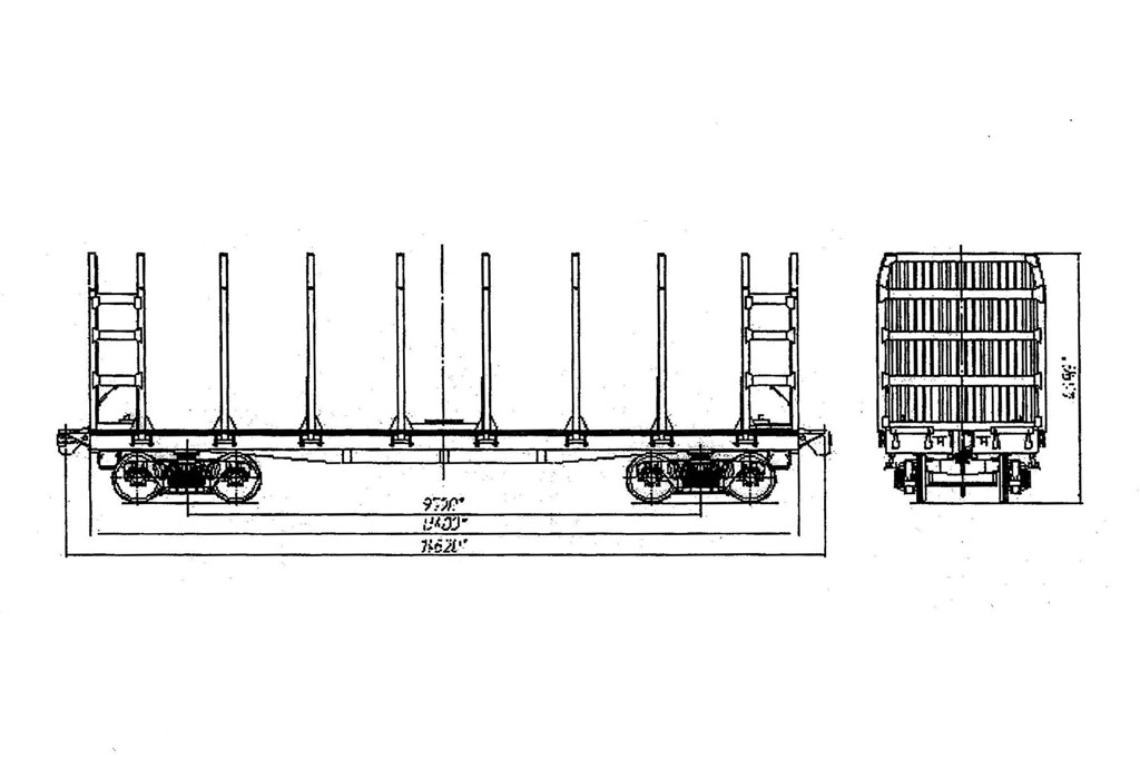 Кадр 2. Прототип модели В.Дерунова - лесовозная платформа с торцевой ограничительной решеткой, без настила.