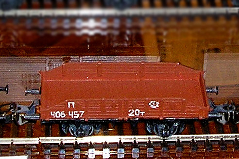 Кадр 3. Модель платформы для перевозки марганца без тормозной площадки на выставке в ЦМЖТ, Петербург.