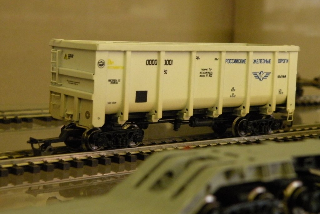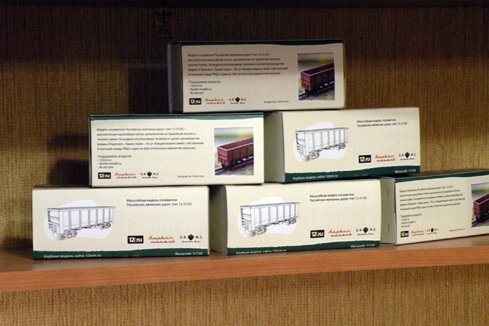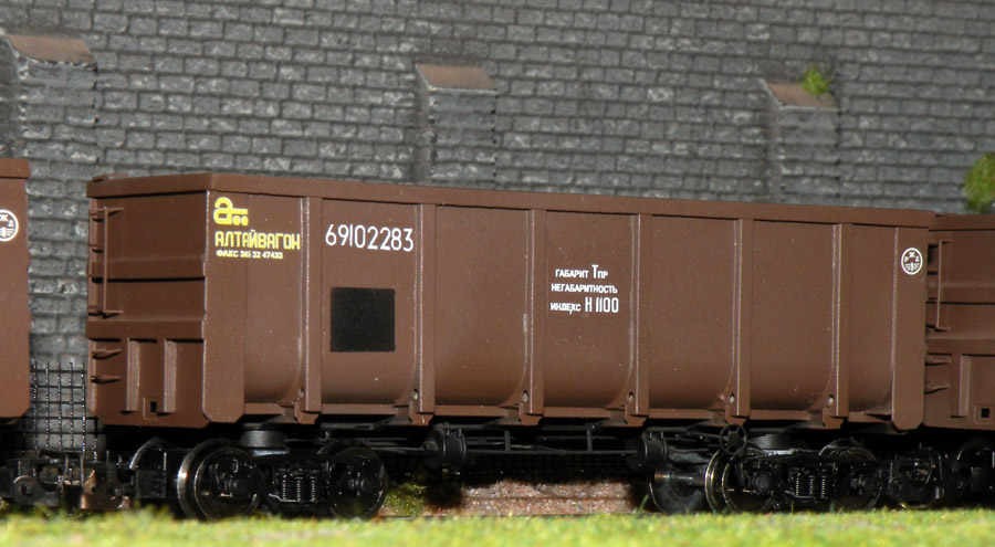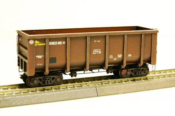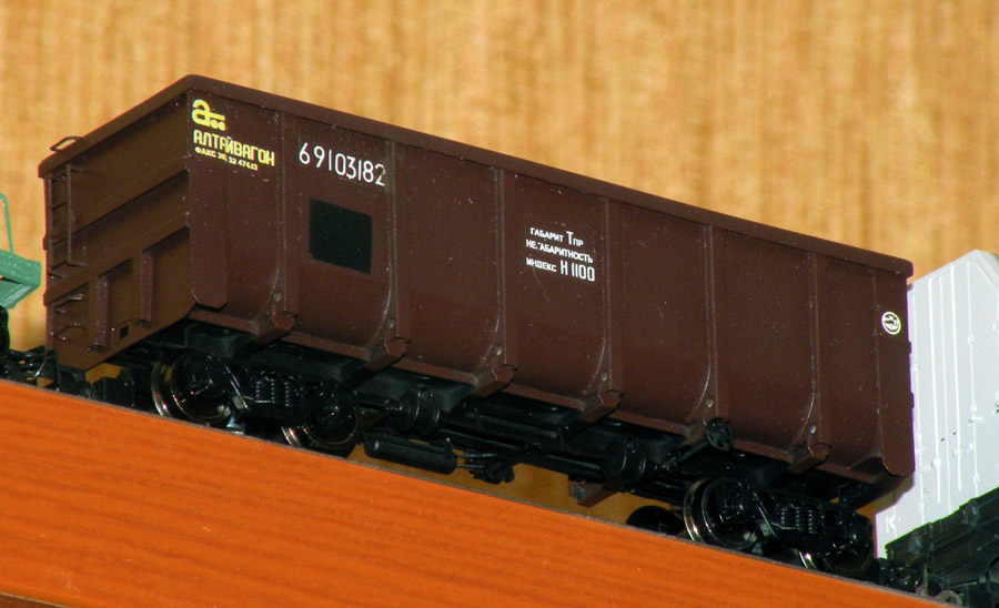 Разновидности: номер, цвет Эпоха: V Принадлежность: РЖД Фирма-производитель: "12mm.ru" совместно с "Норкин-Модель" и "Б.В.-Ж.Д." Год начала производства: 2010 Год окончания производства: малая серия Артикул: 06.010#2009 Описание моделиМодель современного полувагона 12-2123 - совместный производственный проект "12mm.ru" (общая организация), "Норкин-Модель" (проектирование и изготовление "кита" из травленой латуни) и "Б.В.-Ж.Д." (сборка и окраска). Модель выпущена малой серией в 30 шт. в трех вариантах окраски (оттенки коричневого цвета) и с неповторяющимися бортовыми номерами вагонов. Деталировка модели, включая подвагонное оборудование, выполнена на очень высоком уровне. Использованы тележки типа ЦНИИ-Х3О производства фирмы "Пересвет", визуально близкие к тележкам прототипа. Модель полувагона 12-2123 производится также в виде "ктиа" для самостоятельной сборки (мануфактура "Норкин-Модель"). С 2012 г. доступны полностью готовые модели от "Норкин-Модель" (арт. 2009, возможна различная окрраска под заказ). Описание прототипа4-осный полувагон с глухим кузовом со скругленным нижним поясом, мод. 12-2123-01, выпускается с 2006 г. предприятием "Промтрактор-вагон" в г. Канаш. Вагон является также перспективной моделью для предприятия "Алтайвагон" (на модели нанесен логотип именно завода "Алтайвагон"). Вагон предназначен для перевозки инертных насыпных, крупнокусковых грузов, не требующих защиты от атмосферных осадков, с последующей разгрузкой на вагоноопрокидывателях. Вагон пригоден для эксплуатации по всей сети железных дорог колеи 1520 мм (габарит Тпр). Грузоподъемность вагона 76 т, тара 24 т. Объем кузова - 89 куб.м. Конструкционная скорость 120 км/ч. Габарит Тпр. Модель тележки 18-9800.