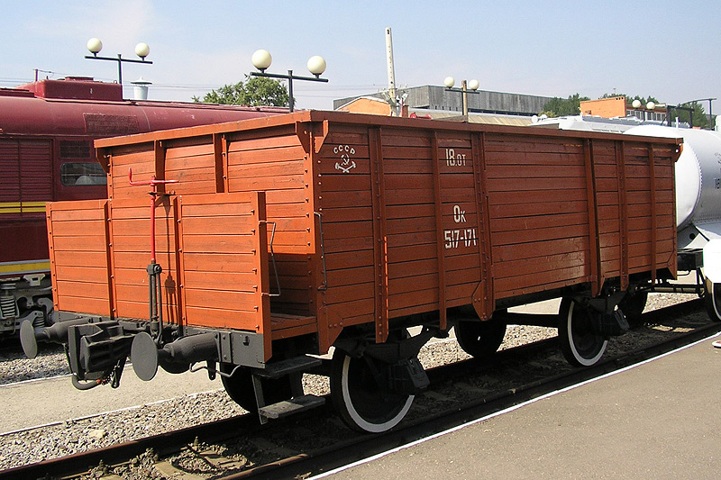 Кадр 2. Полувагон, переделанный из НТВ (с тормозной площадкой) - экспонат Санкт-Петербургского ж.д. музея (Варшавский вкз.).