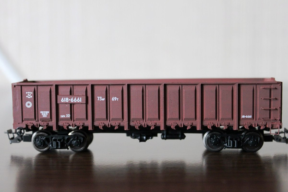 Разновидности: два бортовых номера Эпоха: IV Принадлежность: СЖД; Московский коксогазовый завод Фирма-производитель: RusTrain Год начала производства: 2012 Артикул: 43030 Описание моделиМодель полувагона 12-532-1 выполнена в традиционной для проекта Rustrain малосерийной технологии (арт. 43030). В начале 2013 г. появилась модель в зелёной "промышленной" окраске. Материал корпуса - эпоксидный материал "ПРОТОКАСТ". Использованы тележки ЦНИИ-Х3О и сцепки производства "Пересвет". Описание прототипаВагон-прототип производился до 1973 года.