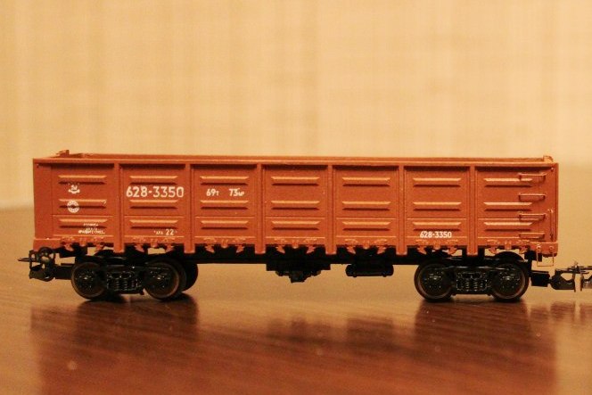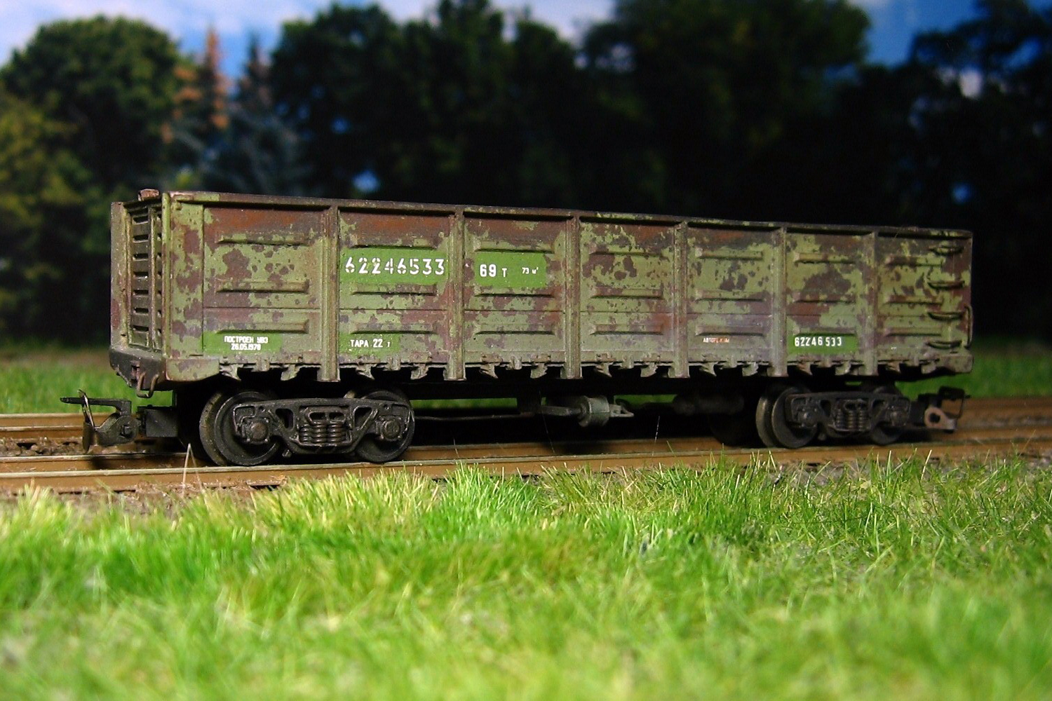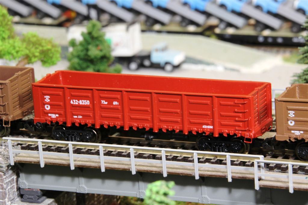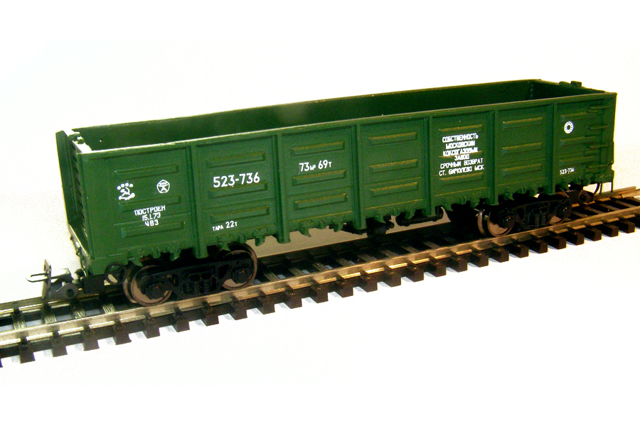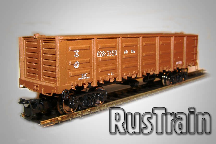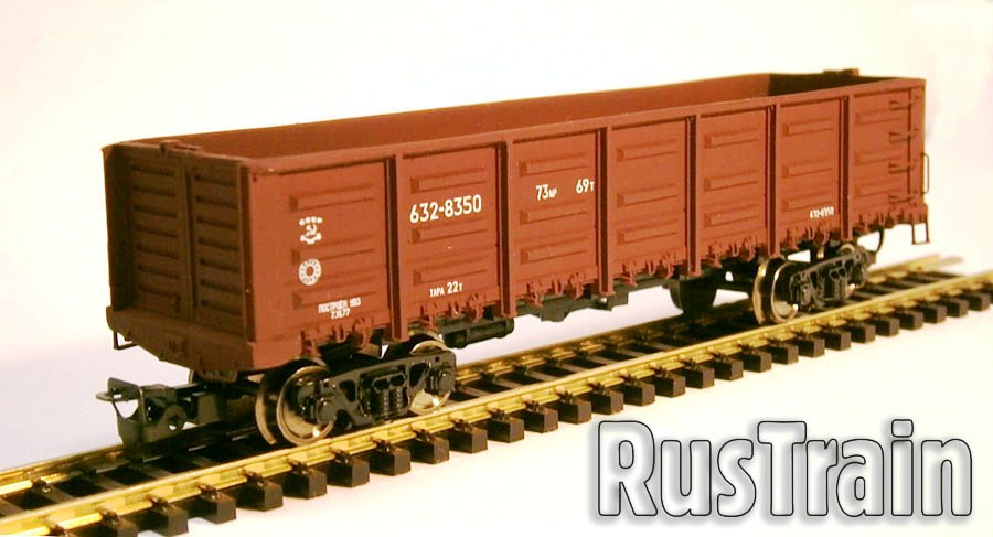 Разновидности: два бортовых номера; оттеночные разновидности; "промышленный" зелёный Эпоха: IV Принадлежность: СЖД; Московский коксогазовый завод Фирма-производитель: RusTrain Год начала производства: 2012 Артикул: 43041, 43042, 43043 Описание моделиМодель полувагона 12-532-1 СЖД (арт. 43041) - первенец в малосерийной производственной программе Rustrain. В начале 2013 г. появилась модель в зелёной "промышленной" окраске (арт. 43042) и затем - вновь модель СЖД коричневого цвета, но с другим номером. Все модели относятся к iv модельной эпохе. Материал корпуса - эпоксидный материал "ПРОТОКАСТ". Использованы тележки ЦНИИ-Х3О и сцепки производства "Пересвет". Описание прототипаВагон-прототип производился после 1973 года и сменил на стапелях заводов предшествующую ему модель 12-532.