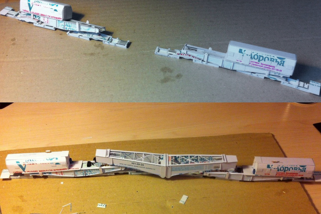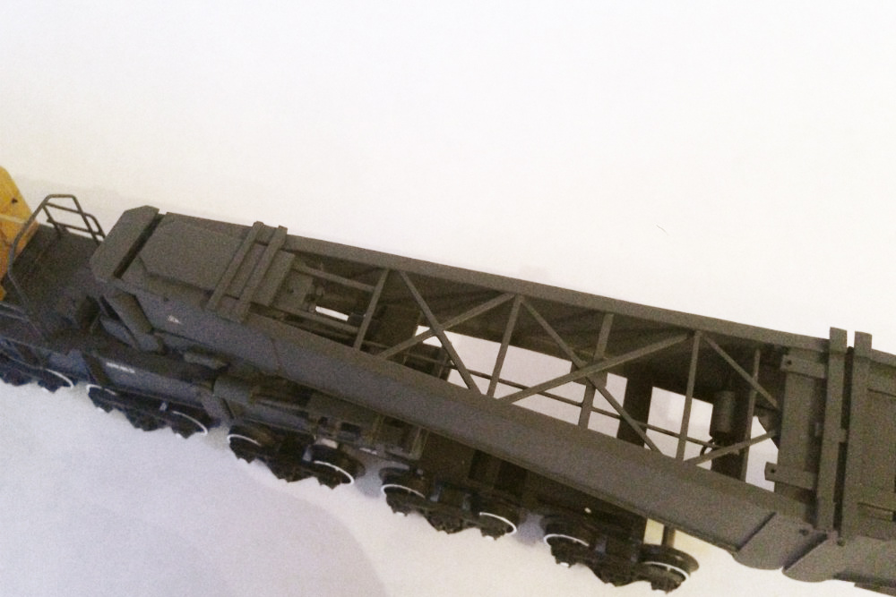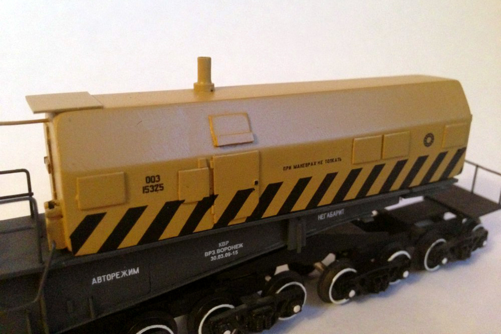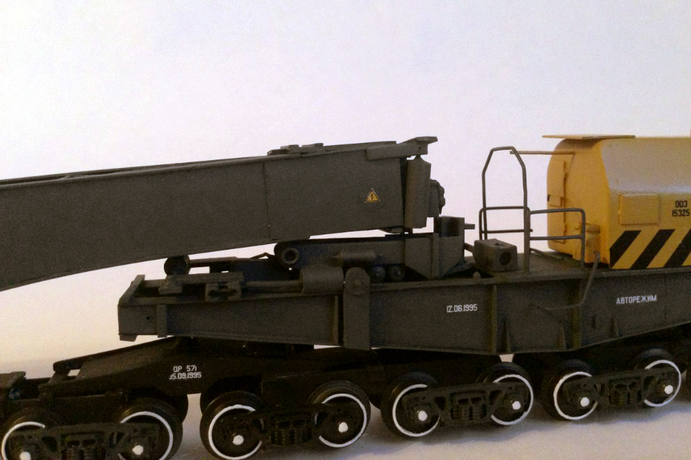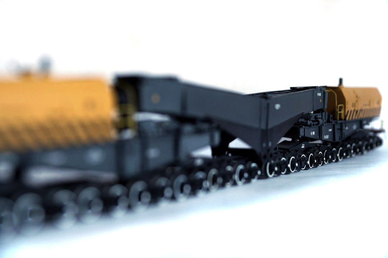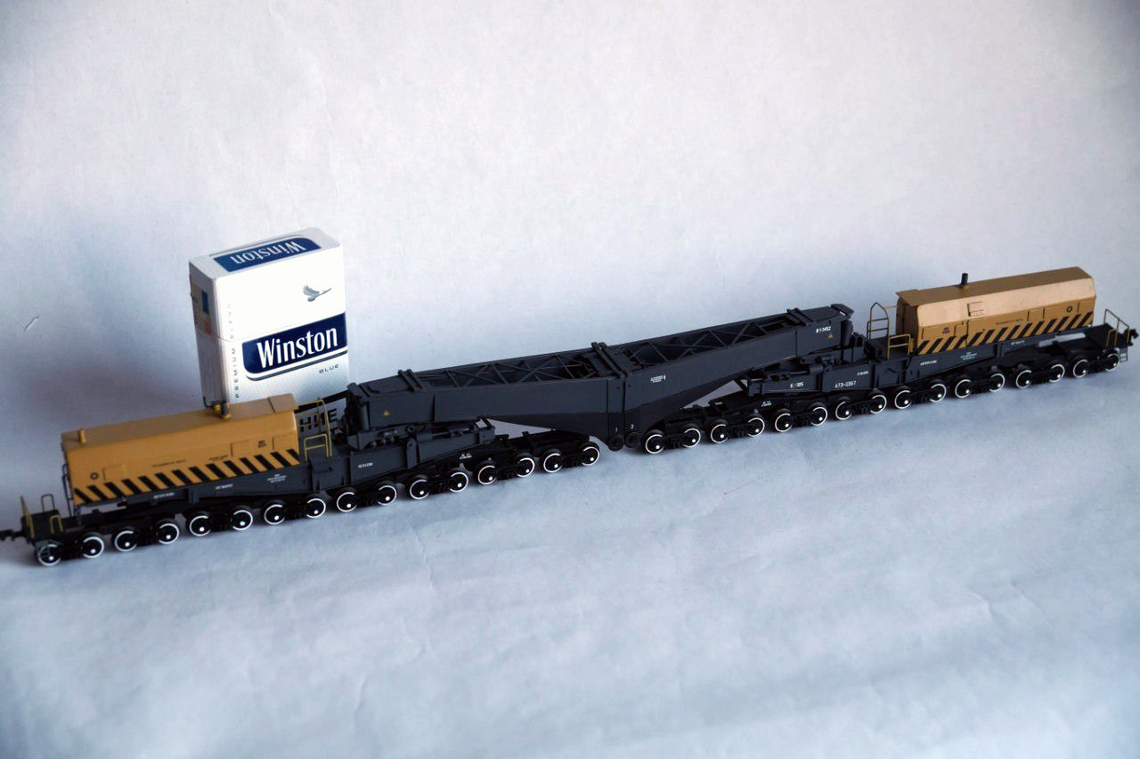Разновидности: модель выполнена в единственном экземпляре Эпоха: V Фирма-производитель: Прийменко В. Год начала производства: 2015 Описание моделиМодель 32-осного транспортёра - авторская работа петербурского моделиста Вячеслава Прийменко. Материалы - ПВХ толщиной 1 мм, листовой полистирол, медная проволока и разнообразные мелкие детали. Использованы тележки типа ЦНИИ-х3О производства фирмы "Пересвет". Модель впервые демонстрировалась на традиционной выставке в ЦМЖТ (Санкт-Петербург) в марте 2016 г. Другие модели 32-осного транспортёра: - от Мануфактуры "Норкин-Модель" (малая серия). Описание прототипа32-осные транспортёры сочленённого типа, грузоподъёмностью 500 т, строились в Германии на заводе KRUPP. Используются для перевозки массивных грузов с максимальной степенью негабаритности. Транспортёр состоит из двух секций, каждую из которых можно использовать как 16-осную платформу. Эти транспортёры были поставлены в бывший СССР ещё в 1979–1980 годах. В настоящее время в инвентарном парке отдела специальных перевозок Центральной дирекции управления движением числятся три таких транспортёра, из них один - в рабочем состоянии.