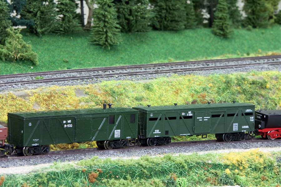 Кадр 1. Модель вагона-скотника с отделением для сопровождающего персонала.