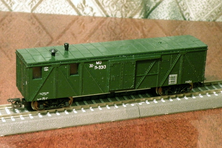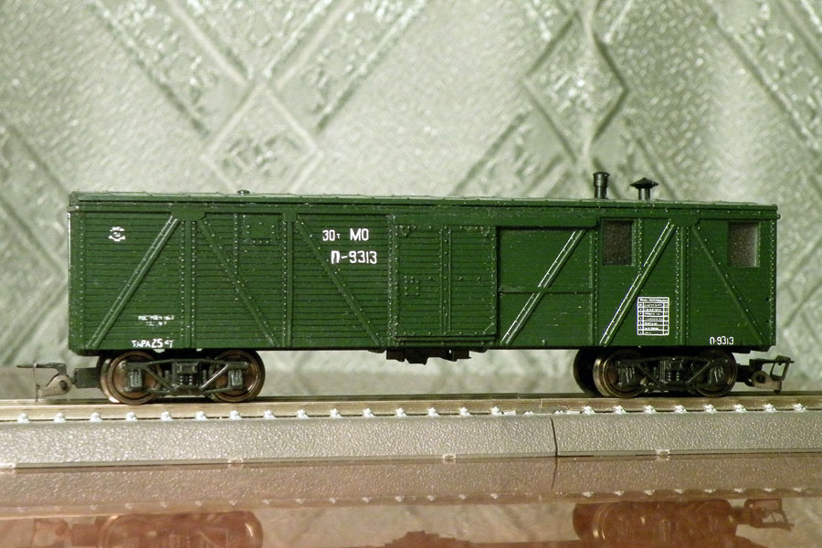 Эпоха: III, IV Принадлежность: пром., СЖД Фирма-производитель: Андреев А. Год начала производства: 2009 Описание моделиМодель выполнена московским моделистом Александром Андреевым на базе 4-осного крытого вагона производства фирмы "Пересвет".