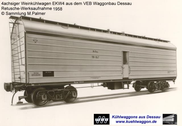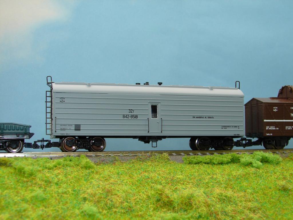 Разновидности: нет Эпоха: IV Принадлежность: СЖД Фирма-производитель: Пересвет Год начала производства: 2025 Артикул: 3970 Описание моделиМодель вагона-ледника для перевозки вина была анонсирована Пересветом в листе новинок 2025 года и впервые поступила в продажу на ежегодной весенней выставке в ЦМЖТ. Модель выполнена из пластика АБС с накладными деталями из травлёной латуни. Надписи нанесены тампопечатью. Сцепки с динамическим механизмом и с возможностью смены головки. Описание прототипаВ СССР виноград и плодовые культуры, используемые для производства массовых недорогих сортов вин и коньяков, произрастали в южных областях и республиках страны. Экономически выгоднее было строить виноразливочные предприятия в больших городах и доставлять на них виноматериалы крупными партиями. Для перевозки, наряду с цистернами-термосами, использовались специальные вагоны-ледники. В рамках кооперации стран-членов СЭВ, начиная с 1953 г., такие вагоны строились для СССР несколькими заводами в ГДР. По классификации производителя они назывались EKW4. Вагоны разных заводов и разных лет выпуска отличались количеством гофров на стенах и некоторыми деталями. Внутри каждого вагона помещались две большие цистерны для вина. Посередине, между цистернами, находилось помещение для проводника и котёл отопления вагона. Баки для льда были закреплены под потолком. Вагоны-ледники для вина широко эксплуатировались до конца существования СССР. После 1991 г. экономические связи между бывшими республиками нарушились, перевозка вина по железной дороге сильно сократилась. Большинство вагонов EKW4 было списано к началу 2000х годов.